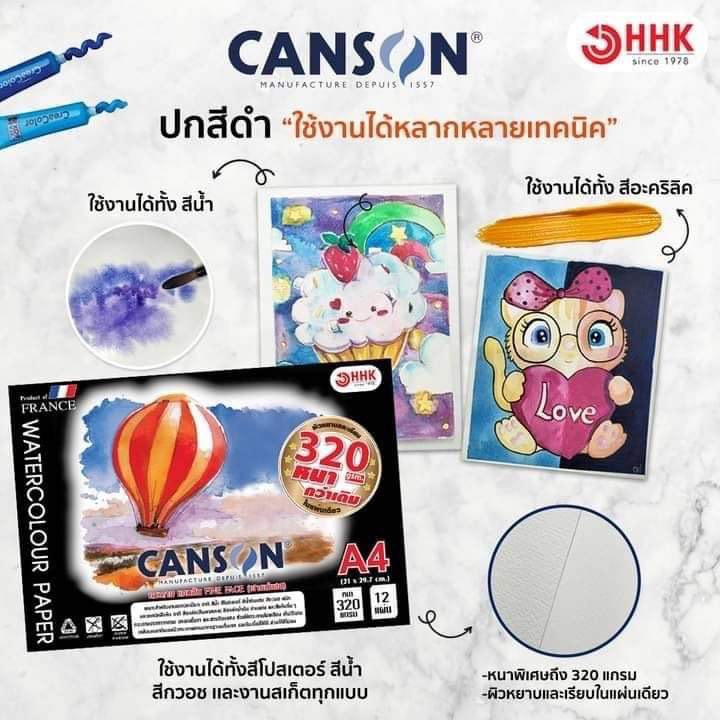 CANSON สมุดวาดเขียนแคนสัน FINE FACE หนา 320 แกรม ผิวหยาบ (บรรจุ 12 แผ่น)