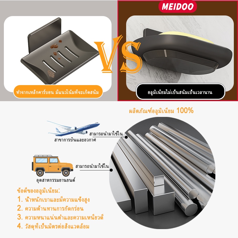 Meidoo ติดผนังที่วางสบู่ ไม่ต้องเจาะรูกล่องสบู่ อัพเกรดด้วยถาดน้ำ, อลูมิเนียมไม่เป็นสนิม