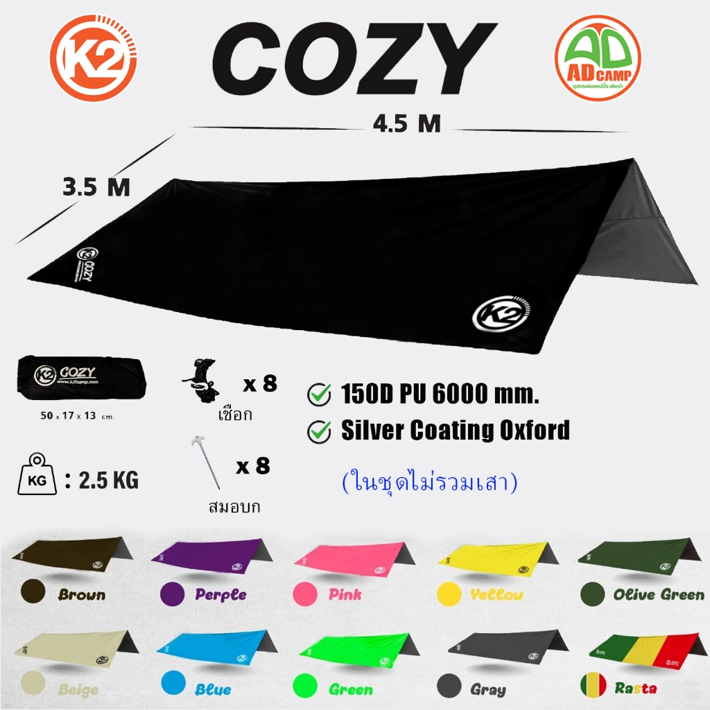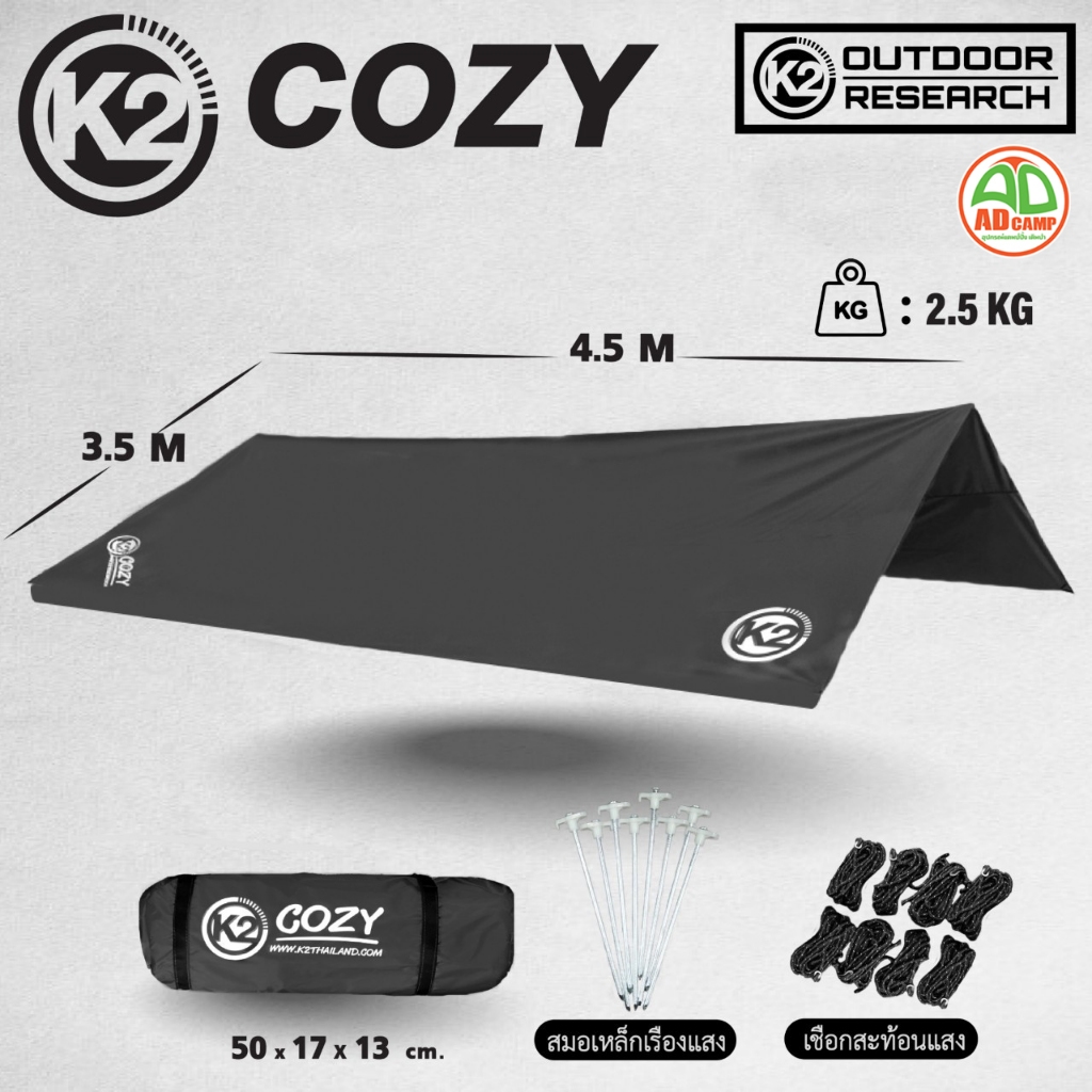 K2 Cozy Tarp ทาร์ปแคมป์ปิ้ง ฟลายชีท สำหรับกางเต็นท์ เคลือบ PU กันแดด กันน้ำ เบา กางง่าย ทนทาน