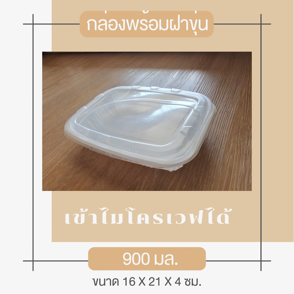 [พร้อมจัดส่งทันที][รวมฝา 25 ชุด] ถาดพลาสติก 900 มล. T-05 สีขาว+ฝาขุ่น เข้าไมโครเวฟได้ ใส่อาหาร เนื้อ