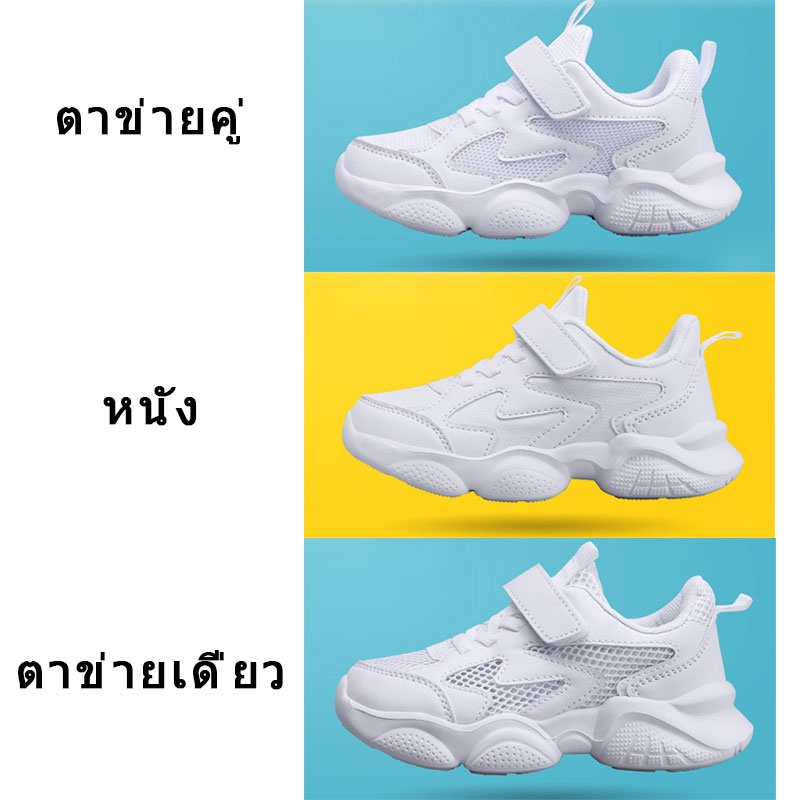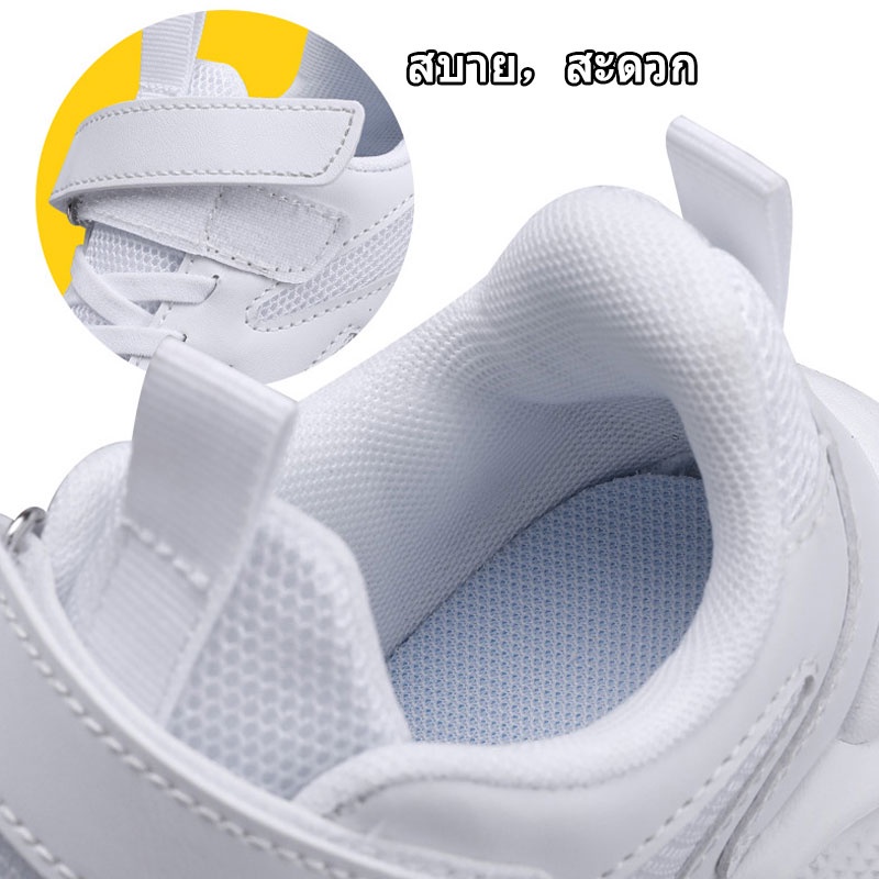 รองเท้าผ้าใบเด็ก นักเรียน สีขาว ตาข่าย เด็กชายและเด็กหญิง รองเท้าวิ่ง ระบายอากาศได้ สบาย