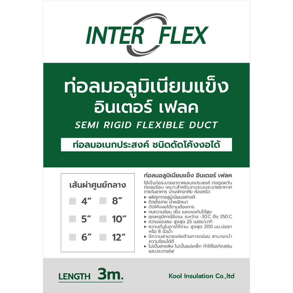 Inter Flex ท่อลมอลูมิเนียมแข็ง กึ่งยืดหยุ่น ขนาด 8, 10, 12 นิ้ว