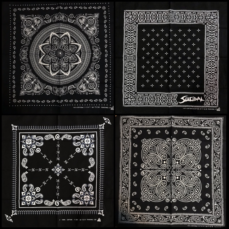 ผ้าโพกหัว BANDANA โทนสีดำ (มีลายให้เลือกเยอะมากกก) ส่งของทุกวัน 🔥 ผ้าเช็ดหน้าลายลูกน้ำ ขนาด 50 x 50 cm. เนื้อผ้าคอตตอน
