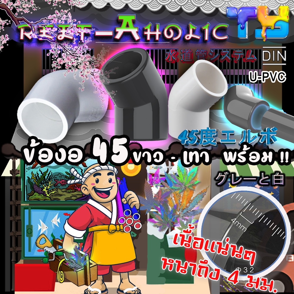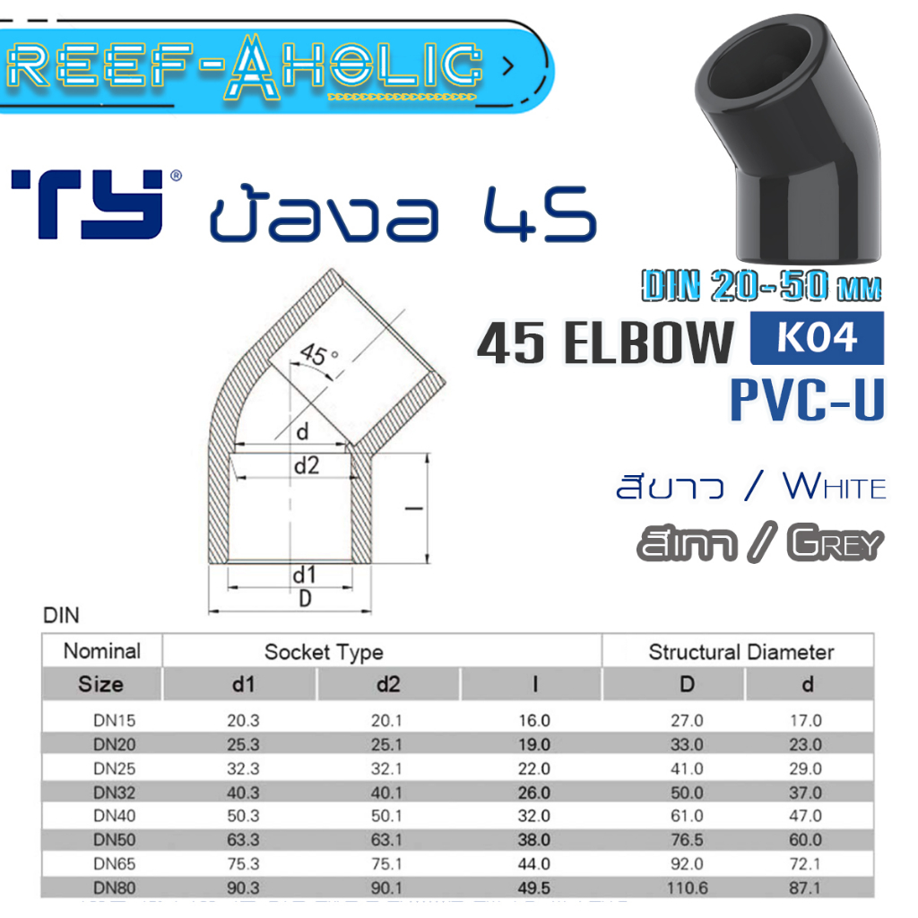 Reef-Aholic TY Elbow ข้องอ 45 องศา U PVC สีขาวและสีเทา ทนทานทุกสภาวะ ไม่ว่าจะแรงดันหรือความหนาวเหน็บ