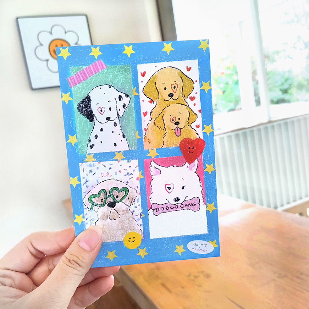 🎂🎈 Postcard 6 ลาย 🐕🦺🎀 (Gimmic✖️worapeachh) โปสการ์ดน่ารักๆ ลายเส้นละมุน การ์ดแข็งหนา เขียนไม่ซึม สีสันสดใส 🍰🍿💗