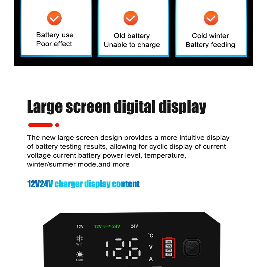 FOXSURเครื่องชาร์จแบตเตอรี่รถยนต์7ส่วนซ่อมพัลส์150W เครื่องชาร์จอัจฉริยะอัตโนมัติเต็มรูปแบบ10A 12V/24V สำหรับการชาร์จ