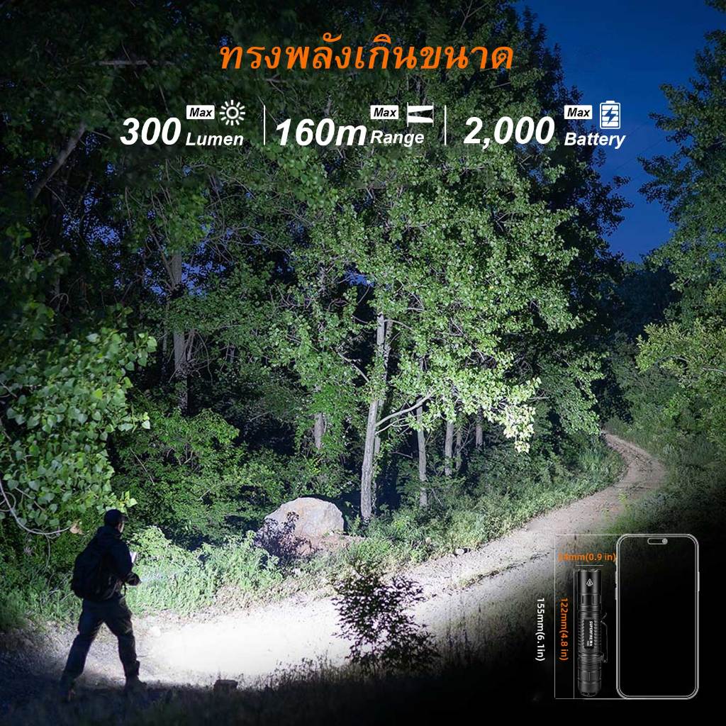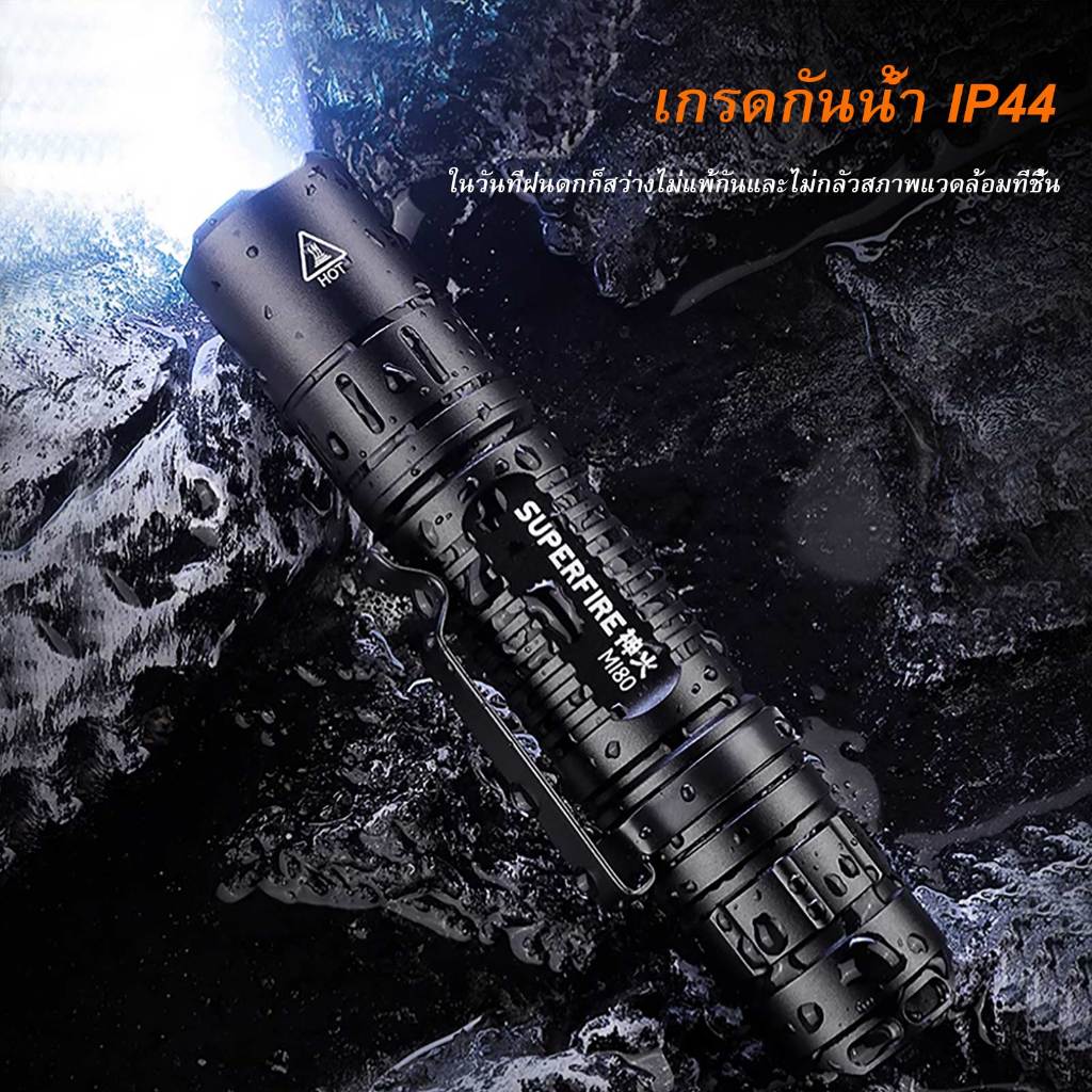 SUPERFIRE MI80 3W EDC ไฟฉาย LED 18650 ไฟฉาย 5 โหมดอลูมิเนียมแบบพกพา แคมป์ปิ้ง กลางแจ้งโคมไฟกันน้ำโคมไฟ