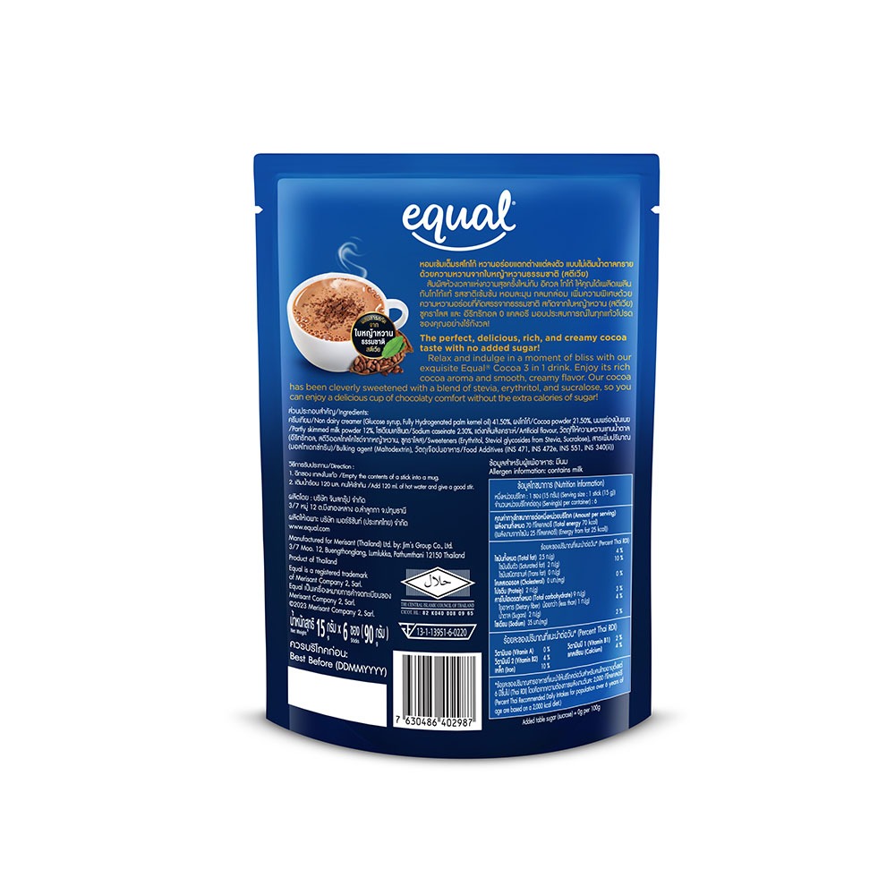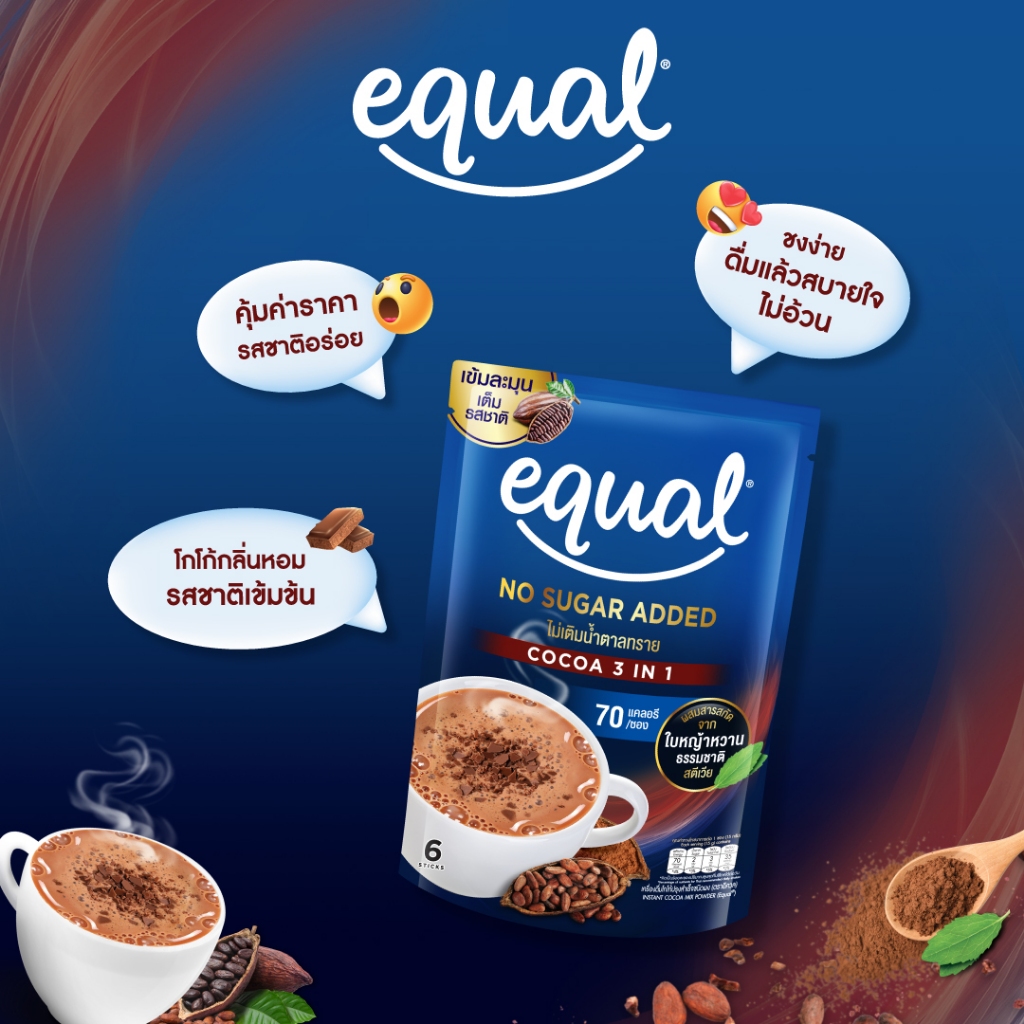 Equal Cocoa อิควล โกโก้ 3in1 โกโก้แท้จากเนเธอร์แลนด์ ขนาด 6 ซอง 70 แคลอรี