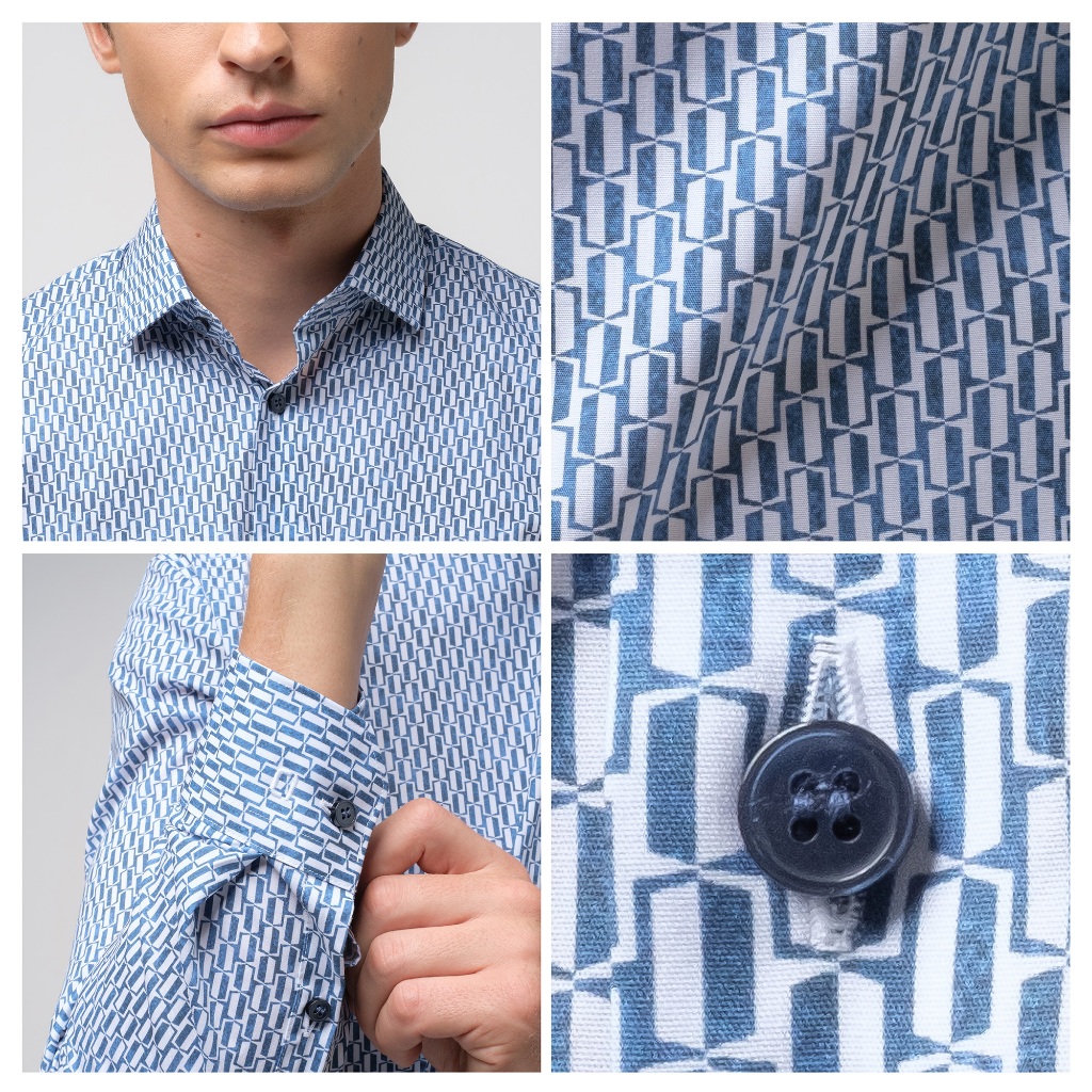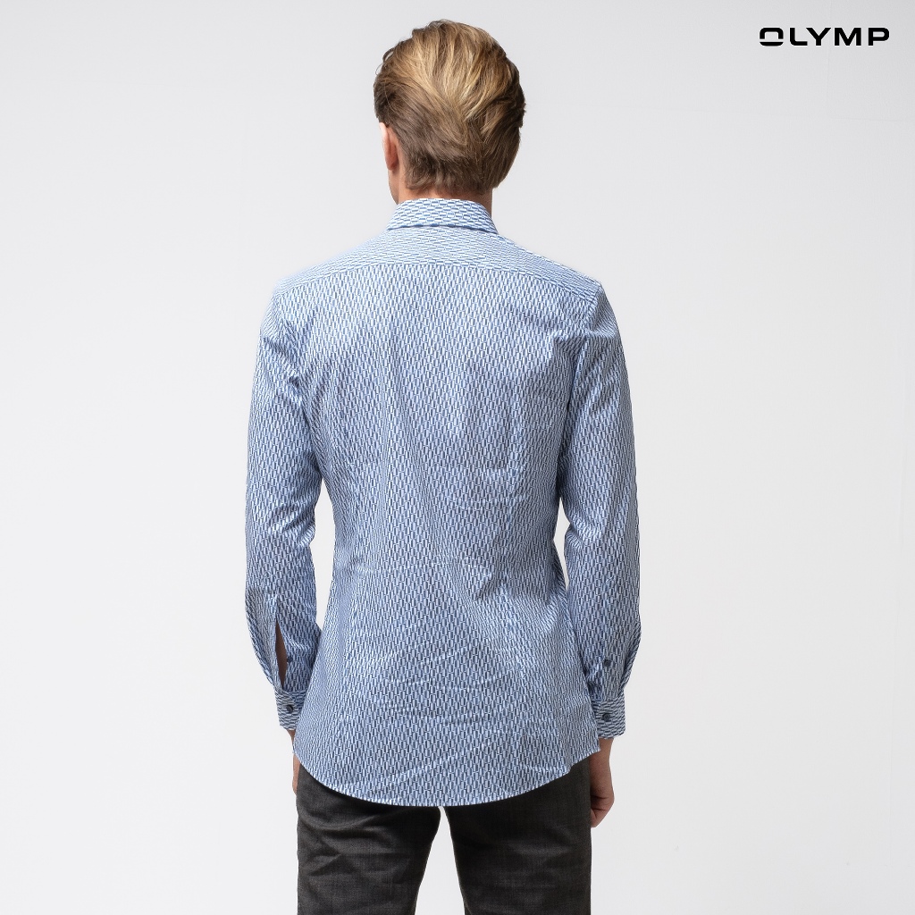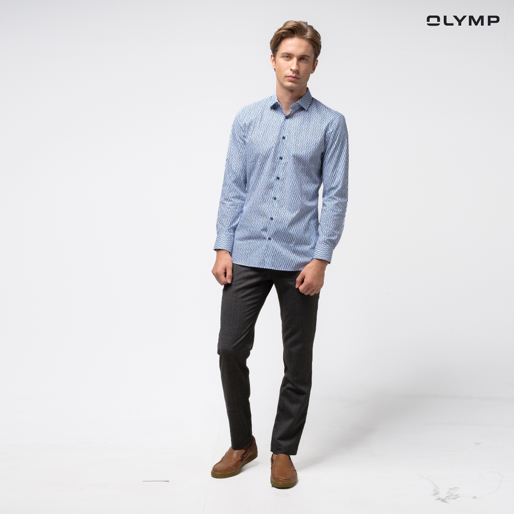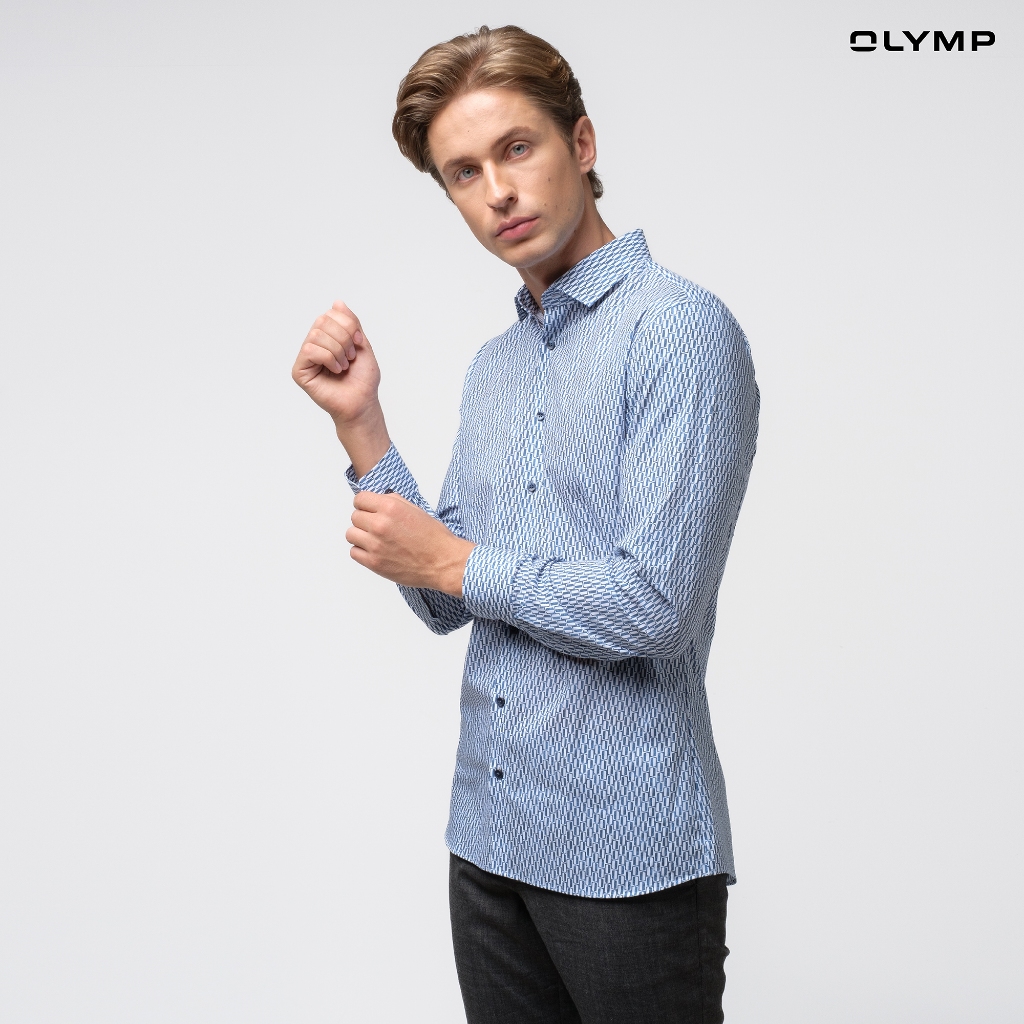 OLYMP No.Six Shirt เสื้อเชิ้ตชาย ลายพิมพ์ สีน้ำเงิน ทรงเข้ารูป ยืดหยุ่น รีดง่าย SPRI24 เสื้อทำงาน