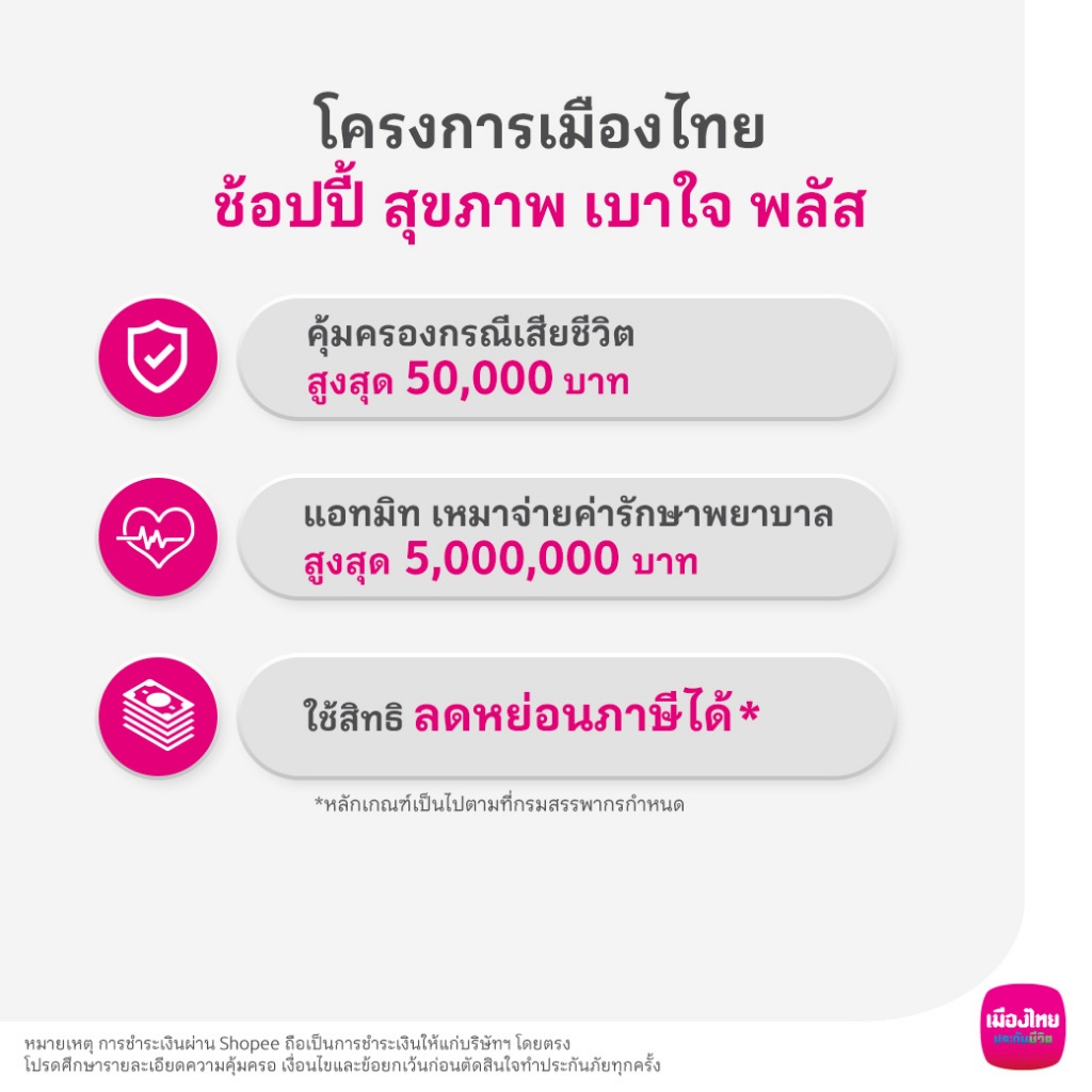 [E-Voucher] เมืองไทย ช้อปปี้ สุขภาพ เบาใจ พลัส คุ้มครอง 5 ล้านบาท