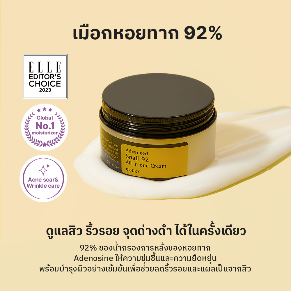 [COSRX OFFICIAL] Advanced Snail 92 All in one Cream 100ml แอดวานซ์ สเนล 92 ออล อิน วัน ครีม