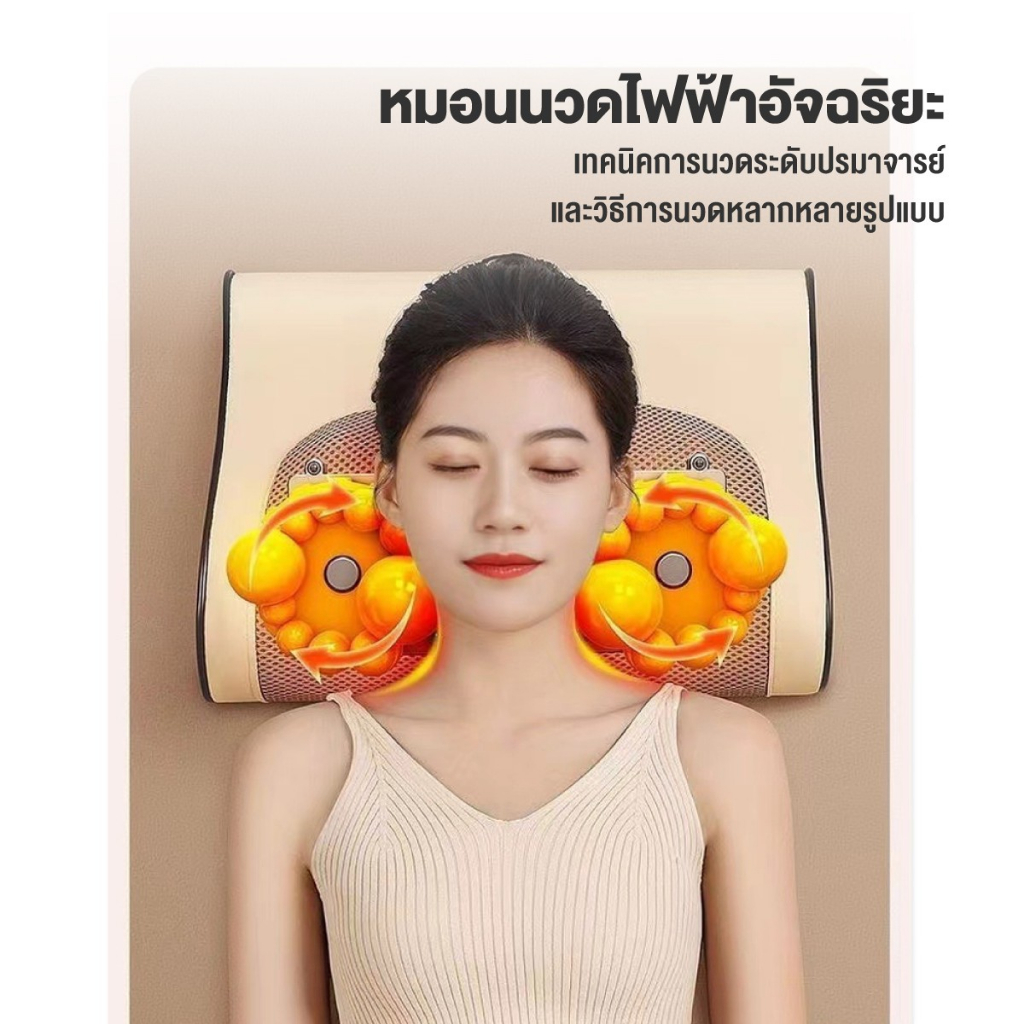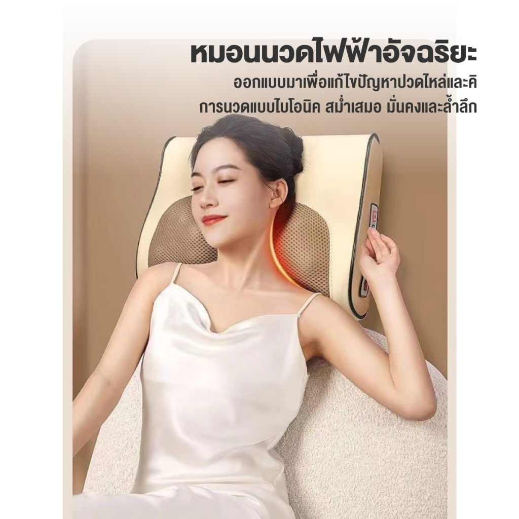 เครื่องนวดอัตโนมัติ ประคบร้อน คอ บ่า ไหล่ เครื่องนวดไฟฟ้า ขนาดพกพา Massage Pillow