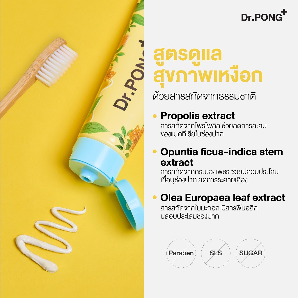 ยาสีฟัน Dr.PONG ที่ตอบโจทย์คนกลัวฟันผุที่สุดครับ มีฟลูออไรด์เข้มข้น 1490 ppm ตามมาตรฐานทันตแพทย์กำหนด กลิ่นหอมสดชื่นช่วยลดกลิ่นปากได้ดีเยี่ยมและไม่แสบปากเลย แนะนำให้แปรงแห้งเพื่อประสิทธิภาพสูงสุดครับ