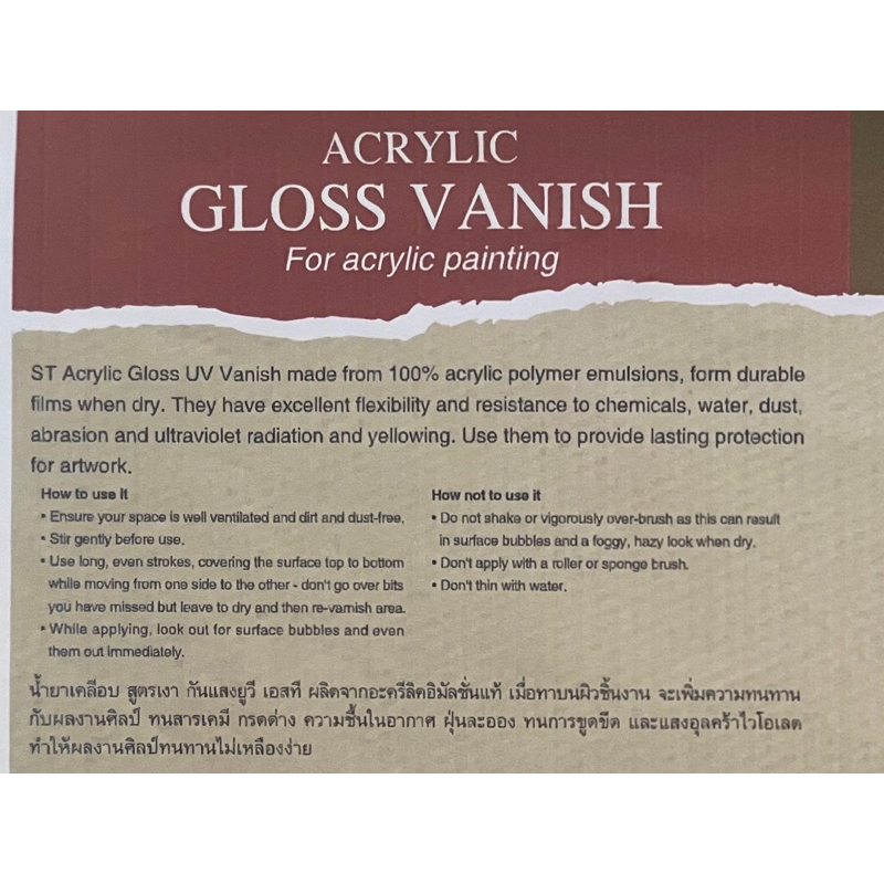 ST Matte & Gloss Vanish น้ำยาเคลือบงานแบบด้านและแวว สำหรับสีอะคริลิค