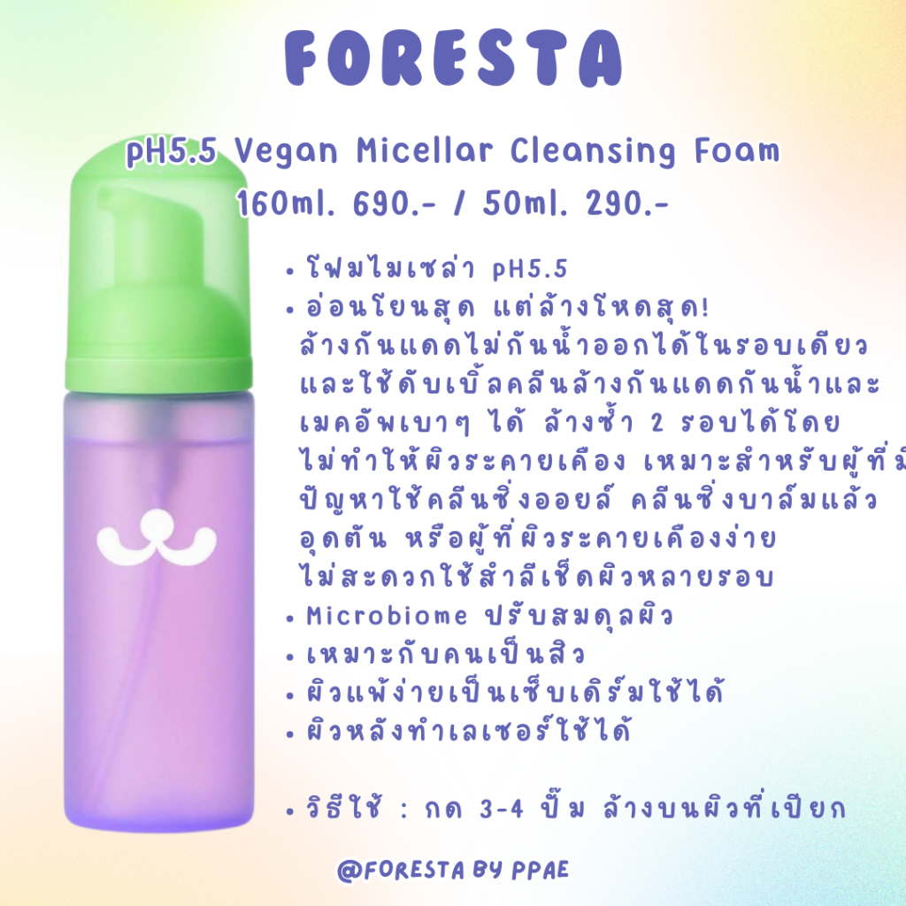 (ตัวแทน) Foresta โฟมล้างหน้า💜 pH5.5 Vegan Micellar Cleansing Foam ฟอเรสต้าโฟมล้างหน้ามะเขือม่วง 💜