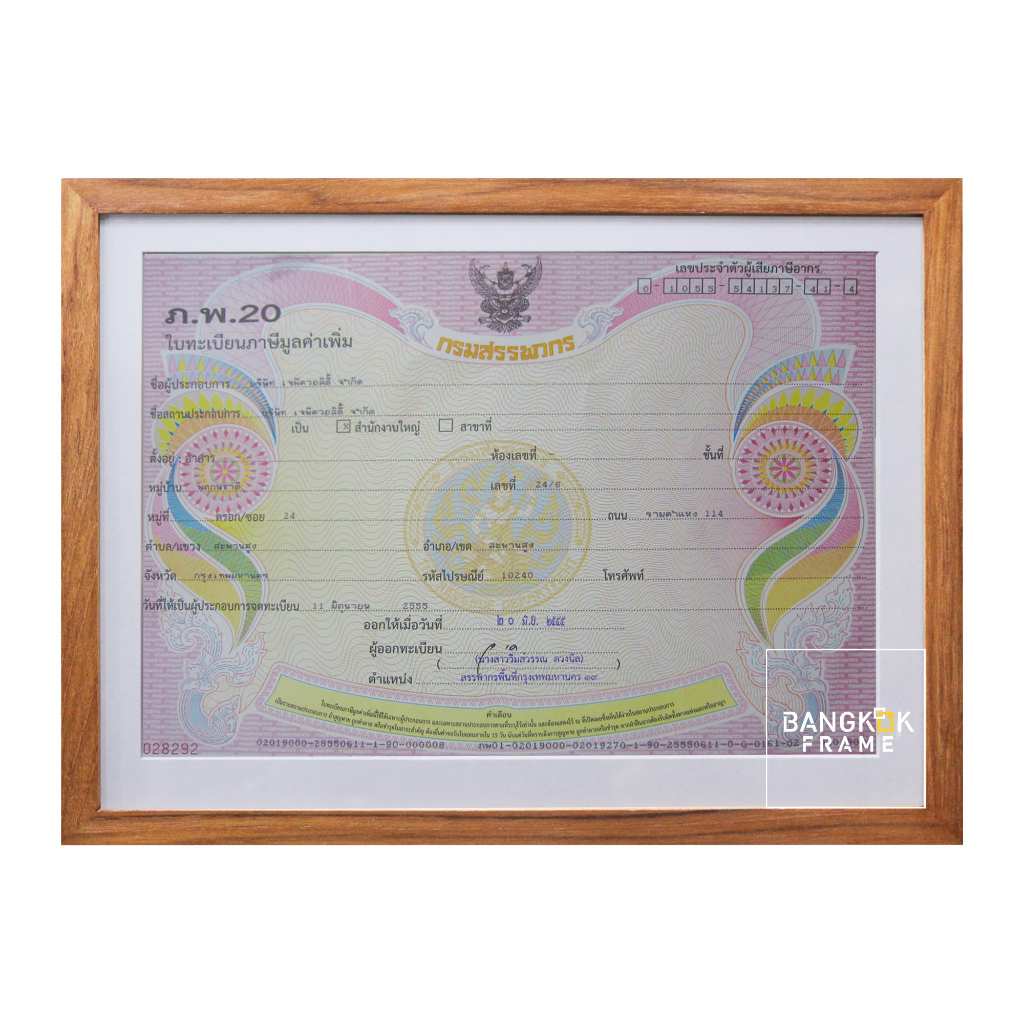 Bangkokframe-กรอบใส่ ภพ.20-กรอบใบจดทะเบียนการค้า กรอบเปล่าใส่ ภพ.20 โดยเฉพาะ พร้อมกระจก+หูแขวน+ขาตั้ง