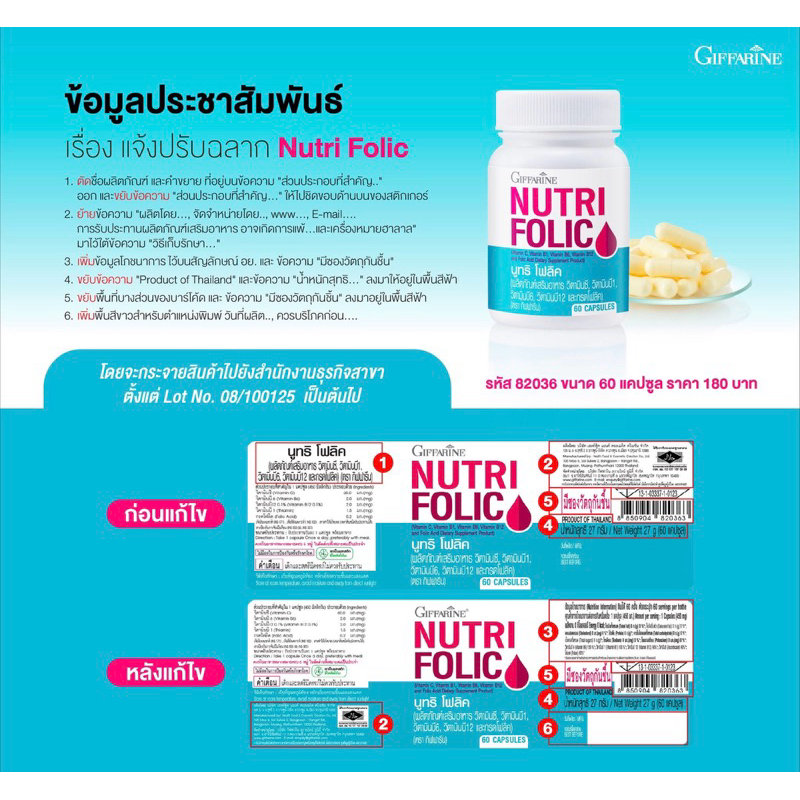 โฟลิค โฟลิคกิฟฟารีน นูทริโฟลิค โฟลิก FOLIC GIFFARINE สร้างเม็ดเลือด บำรุงเลือด