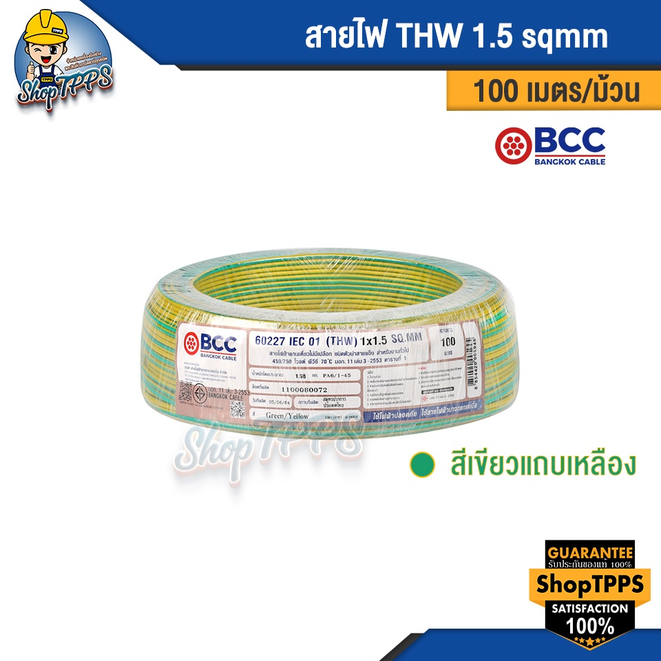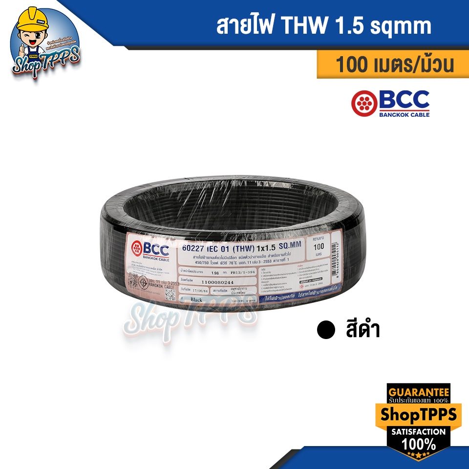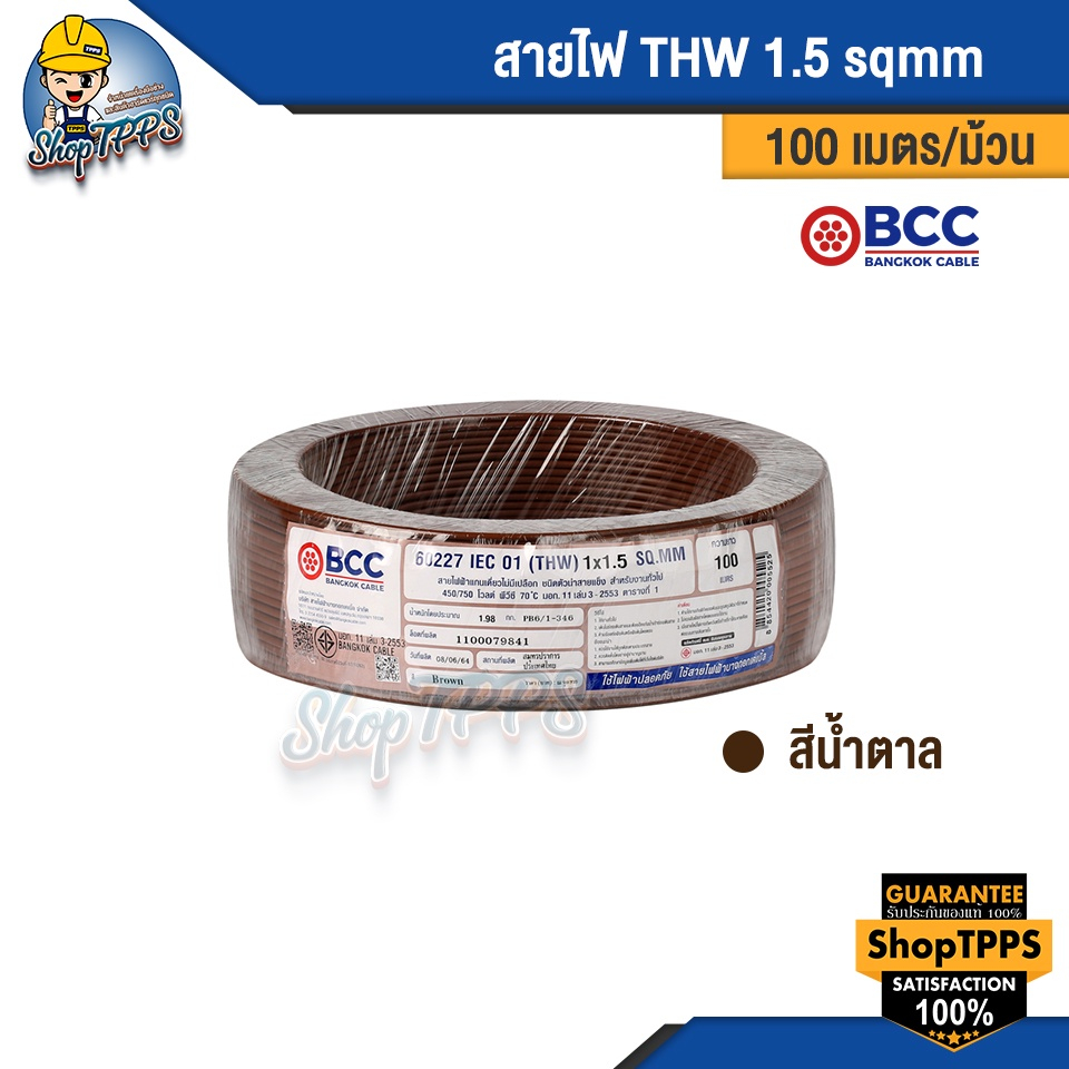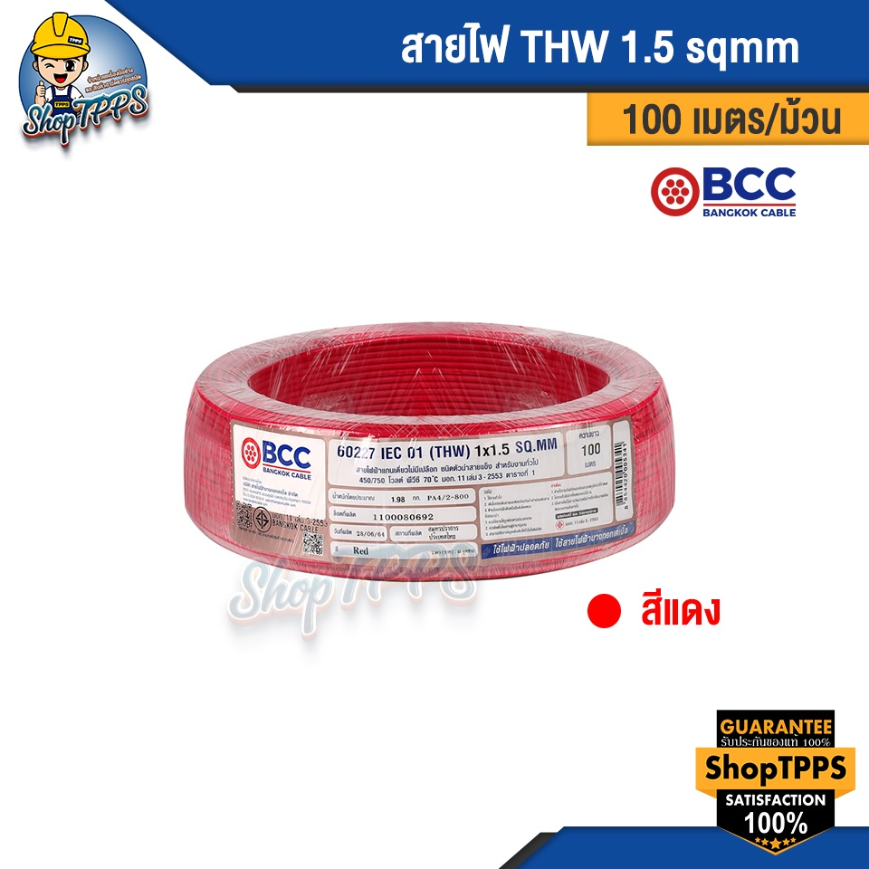 สายไฟ THW 1.5 sqmm BCC 100 เมตร/ม้วน