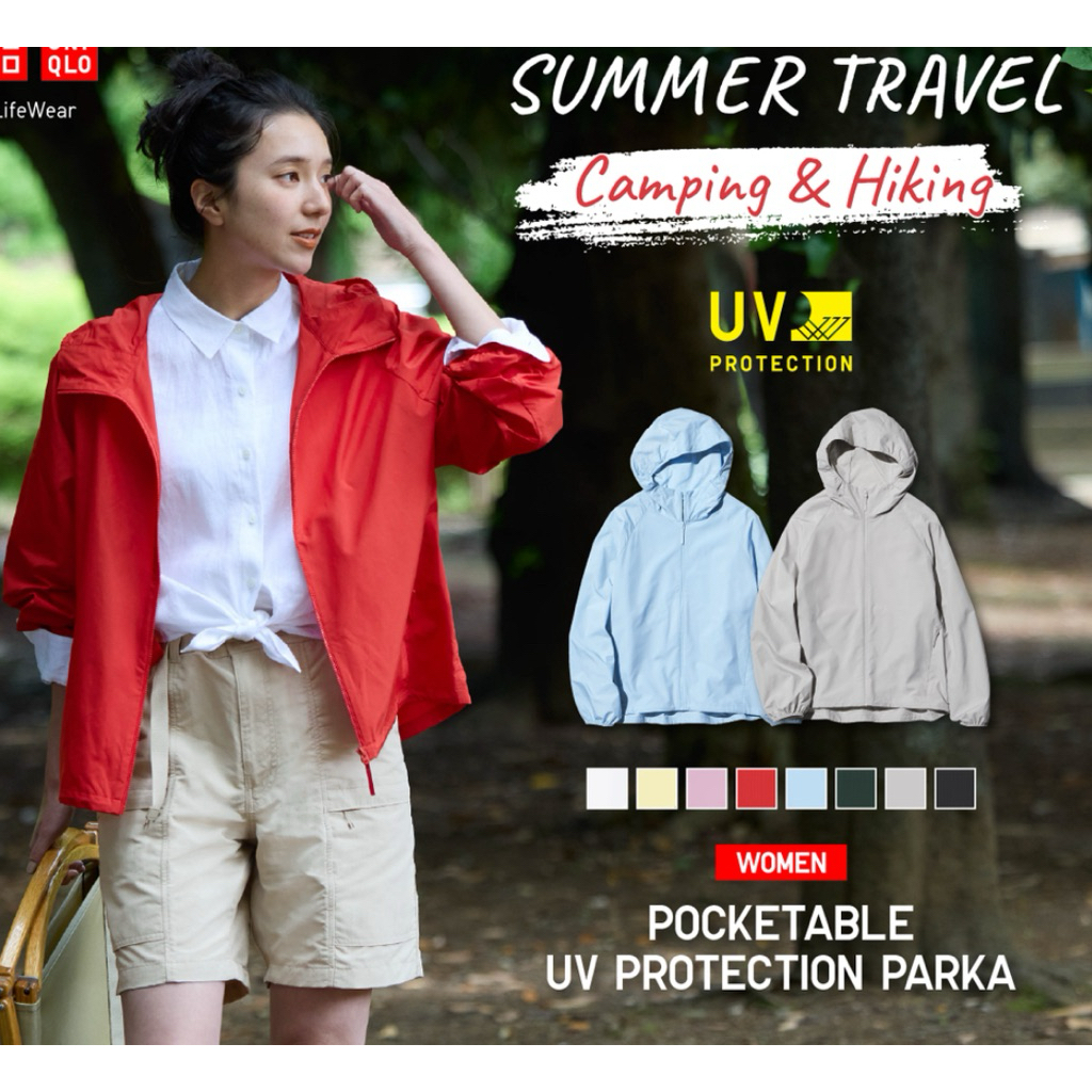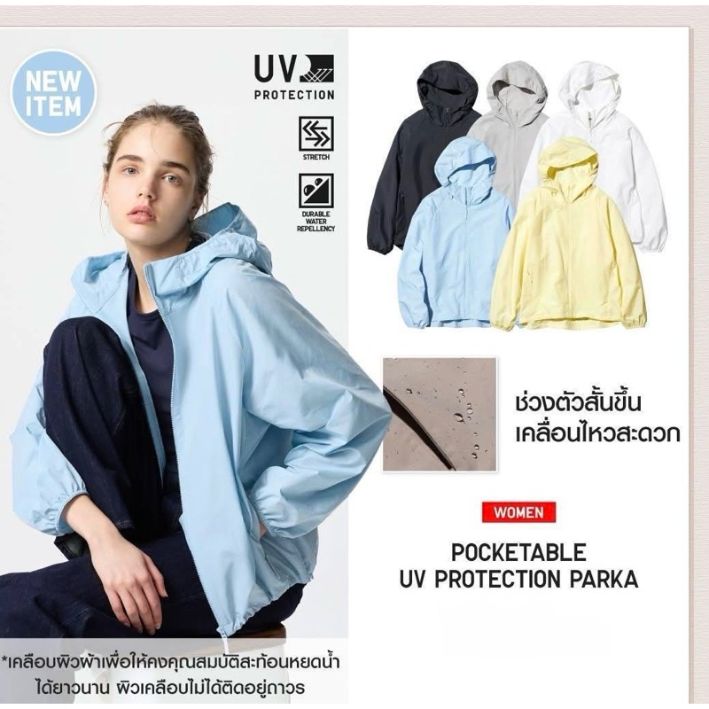 F.Japan & Thai💦 New เพิ่มสีใหม่ เสื้อฮู้ด ทรงหลวม พับเก็บได้ กัน UV Uniqlo Women Pocketable Parka