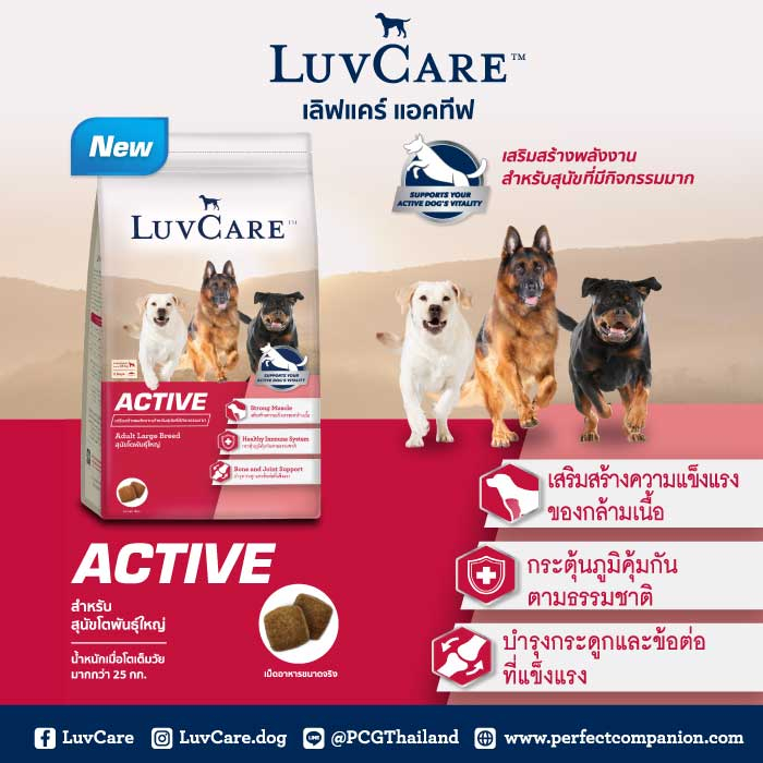 เลิฟแคร์ อาหารสุนัขโต แอคทีฟ(พันธุ์ใหญ่) 15กก. / LUVCARE ACTIVE ADULT LARGE BREED DOG FOOD 15KG