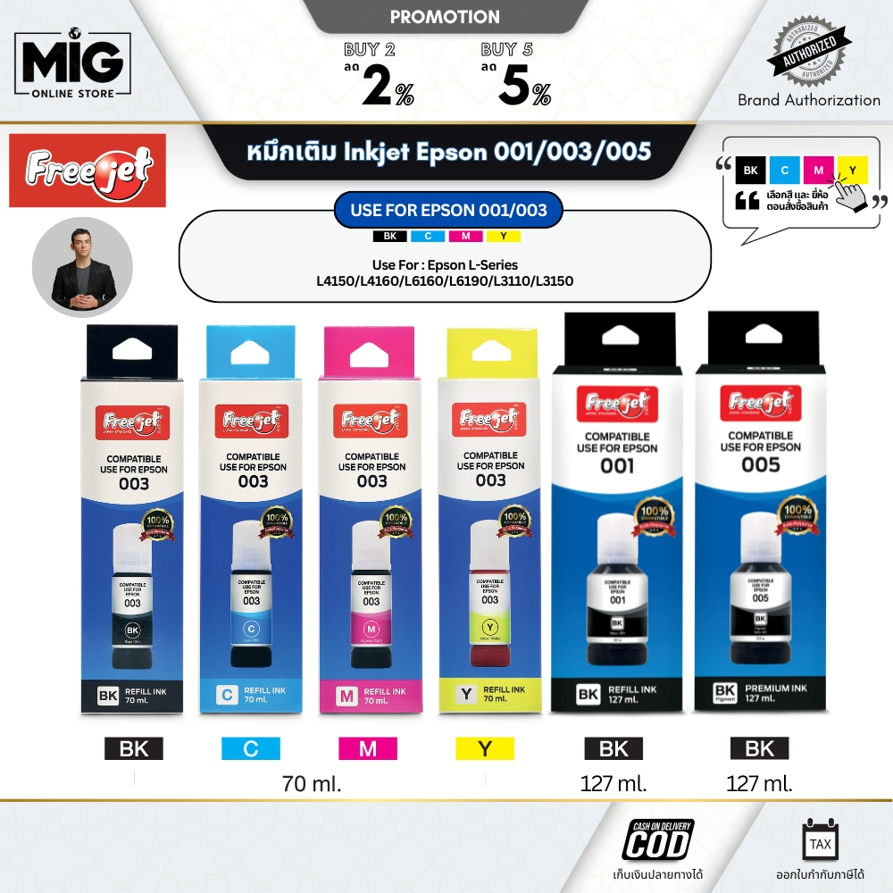 Freejet หมึกเติม Inkjet Printer Epson 001/003/005 สำหรับ Epson L4150/L4160/L6160/L6190/L3110/L3150