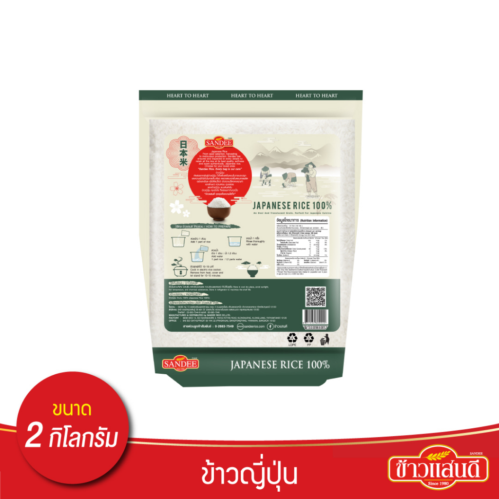 ข้าวแสนดี ข้าวญี่ปุ่น 100% (JapaneseRice) 2 กก. จำนวน 1 ถุง
