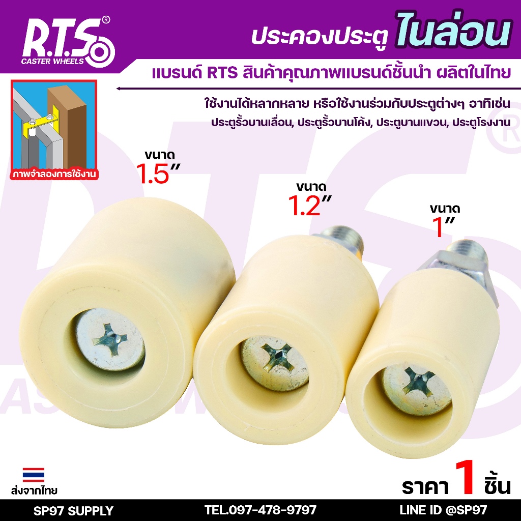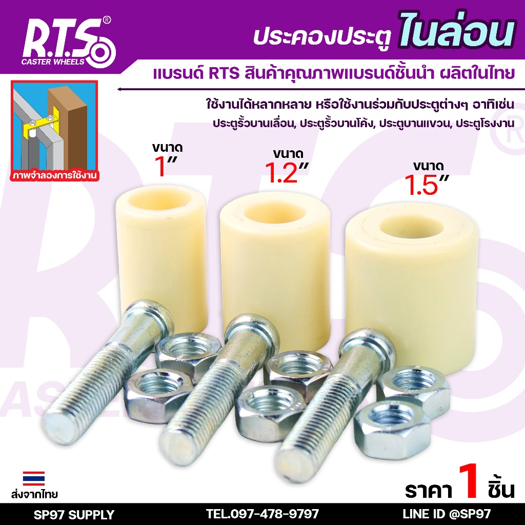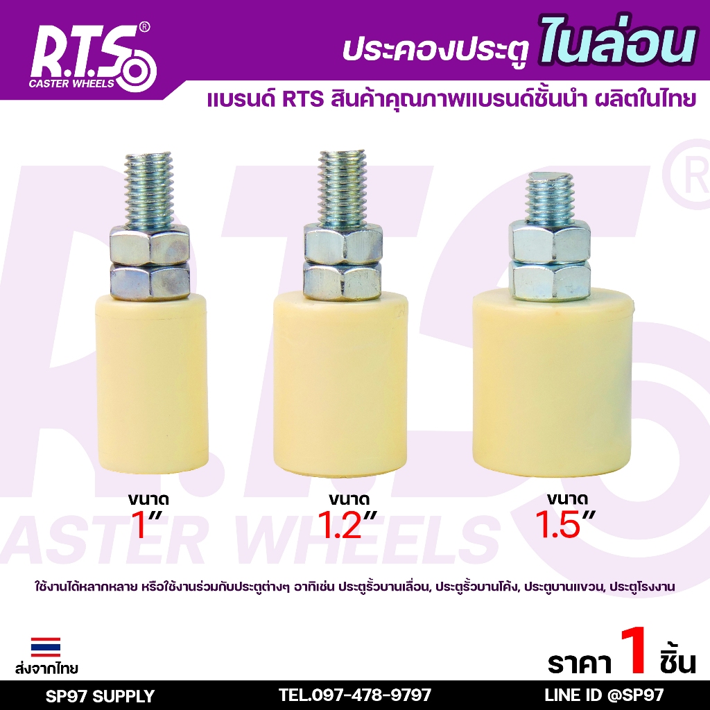 RTS ล้อประคอง ไนล่อน เกรดA แบบสั้น เกลียว เหล็กชุบซิงค์ อะไหล่ สำหรับ ประตูรั้ว บานเลื่อน บานโค้ง (ราคา 1ชิ้น)