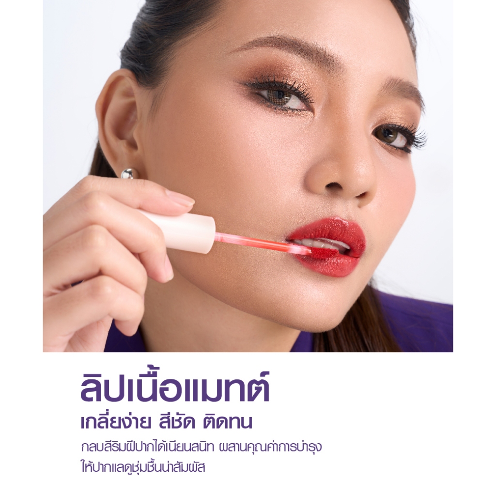 ลิปแมตต์แบรนด์ไทยที่เม็ดสีสดใสและเข้ากับผิวพรรณเอเชียดีมากครับ เนื้อลิควิดบางเบาไม่หนักปากและช่วยปกปิดสีปากได้เนียนสนิท ราคาคุ้มค่าที่สุด