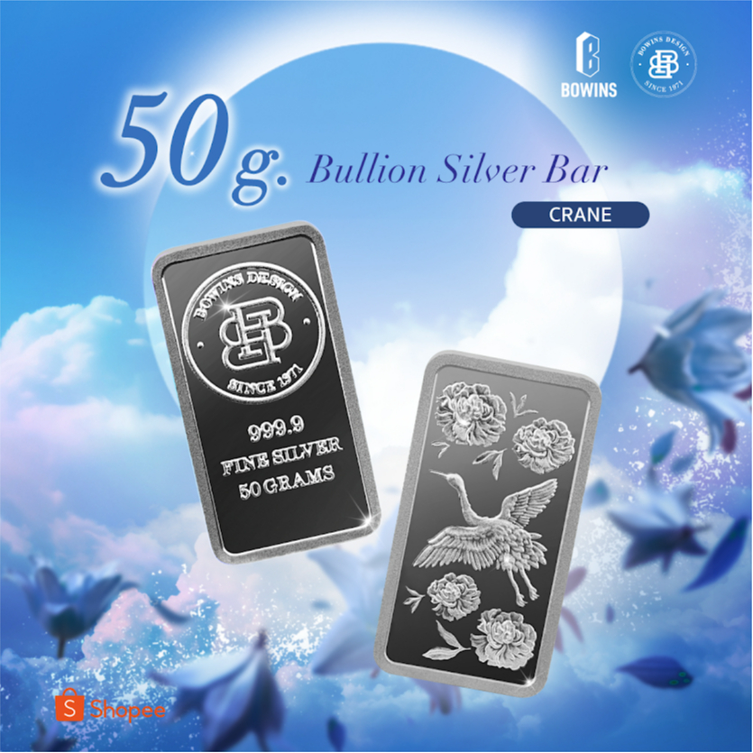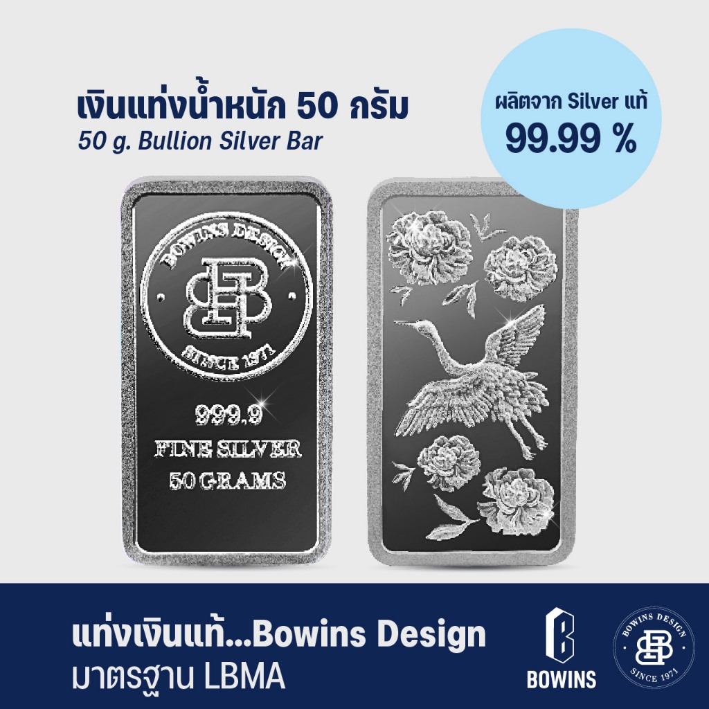 แท่งเงิน 99.99% น้ำหนัก 50 กรัม - ลายนกกระเรียน - Bullion Silver Bar 50 Grams - Crane
