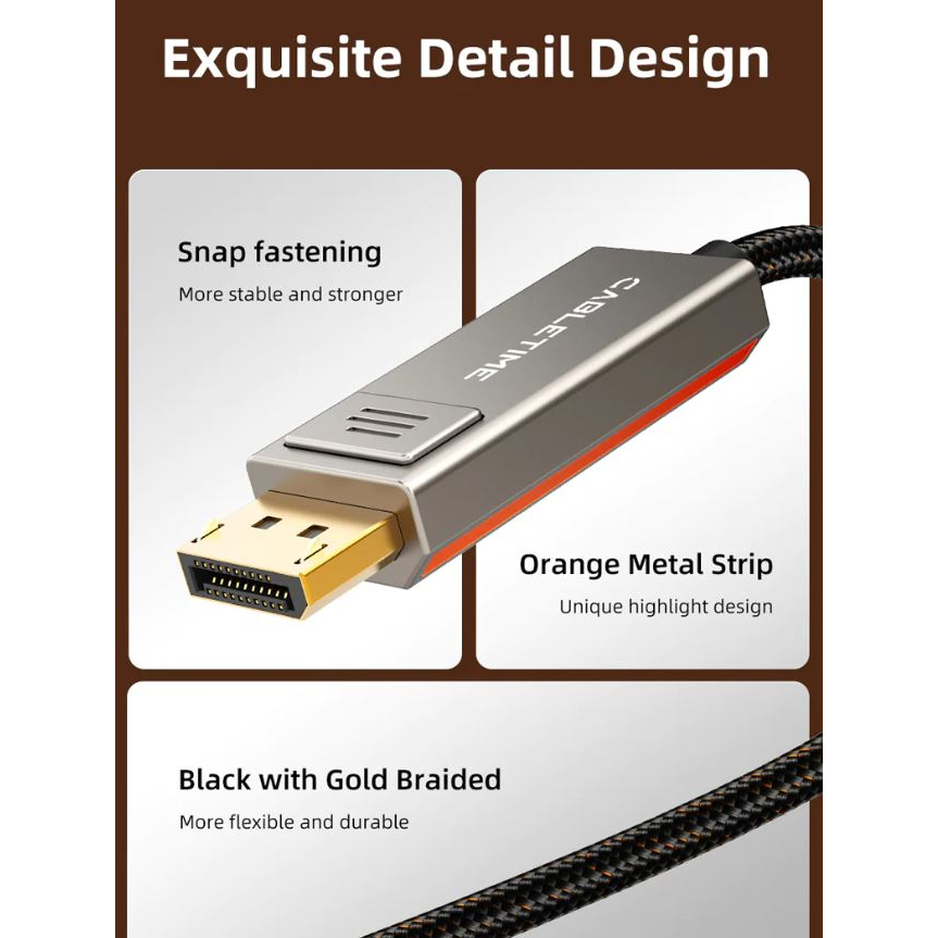 CABLETIME (มี2รุ่น) ⚡️FLASH SALE⚡️ USB-C 8K@60Hz Bidirectional USB Type-C To DisplayPort Cable 4K@144Hz รุ่น CC22L CC23L