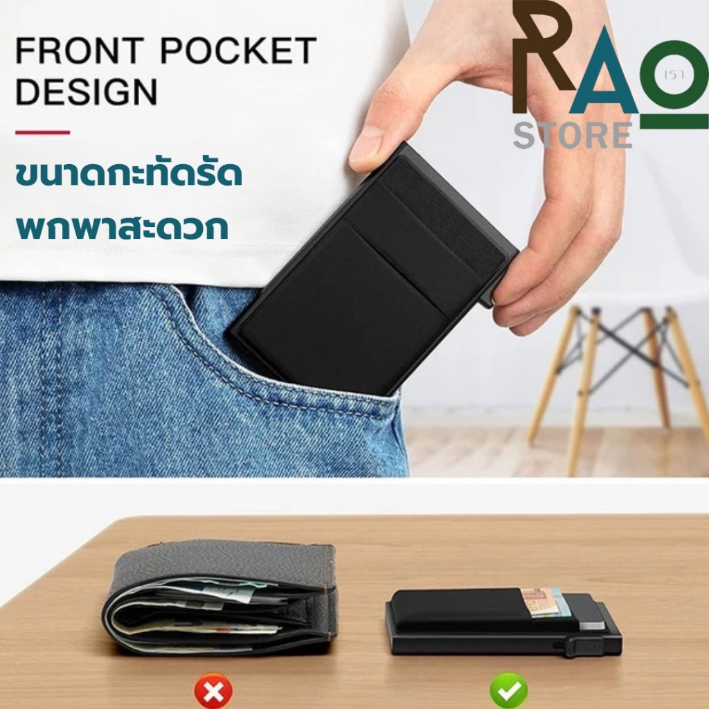 RAO Store กระเป๋าใส่บัตรเครดิตรุ่นslim มีระบบ RFIDป้องกันการโจรกรรม กล่องเก็บบัตร5-6ใบ เป๋าใส่บัตร กระเป๋าสตางค์ผู้ชาย
