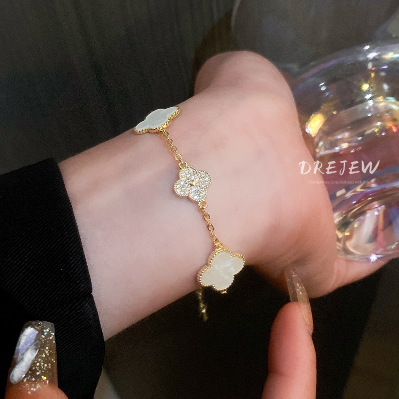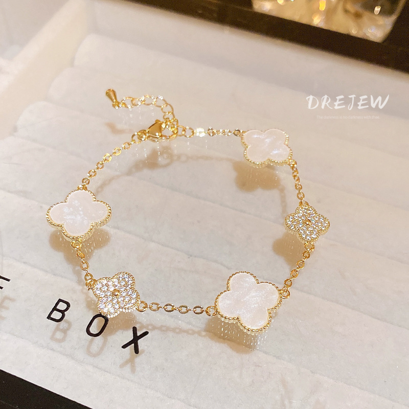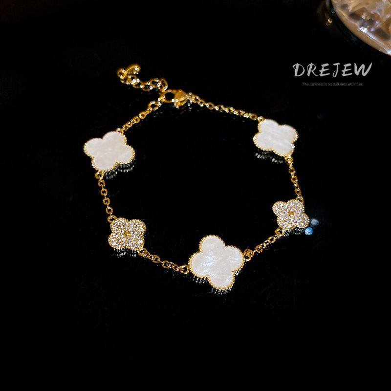 DREJEW สร้อยข้อมือ ทอง 18K ประดับเพทาย ลายดอกไม้ ขนาดเล็ก หรูหรา เรียบง่าย สําหรับผู้หญิง
