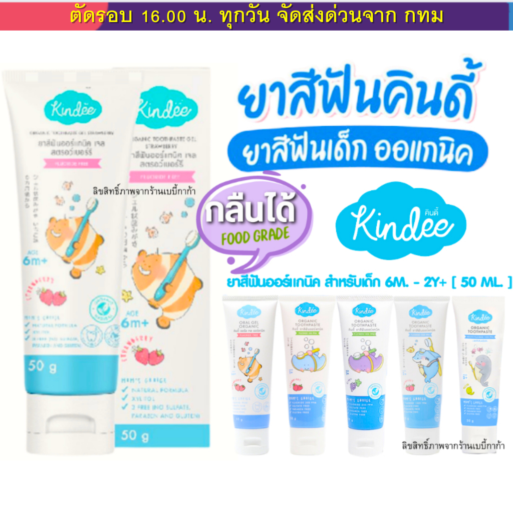 Kindee ยาสีฟันเด็ก คินดี้ ออร์แกนิก ยาสีฟันเด็กกลืนได้ ยาสีฟัน Food Grade เด็ก 6เดือนขึ้นไป ขนาด50g