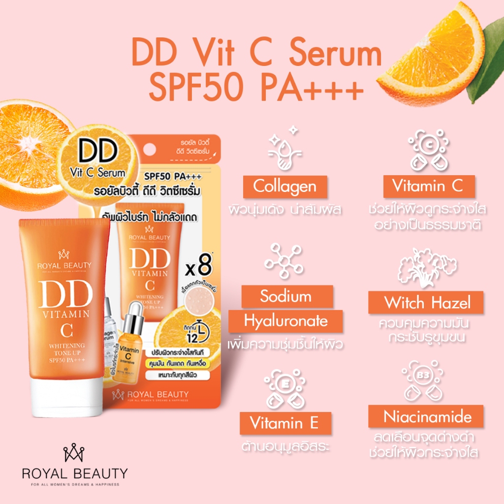 [ 1 แถม 1 ] รอยัล บิวตี้ ดีดี วิตซี เซรั่ม เอสพีเอฟ50 พีเอ+++ 20 กรัม [แบบหลอด]