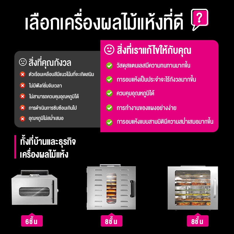 SANDE เครื่องอบผลไม้ สแตนเลส 304 จุได้เยอะ 6/8/12/18 ชั้น ควบคุมอุณหภูมิ30-90℃ 800W ตู้อบผลไม้แห้ง (มีรับประกัน 12เดือน)