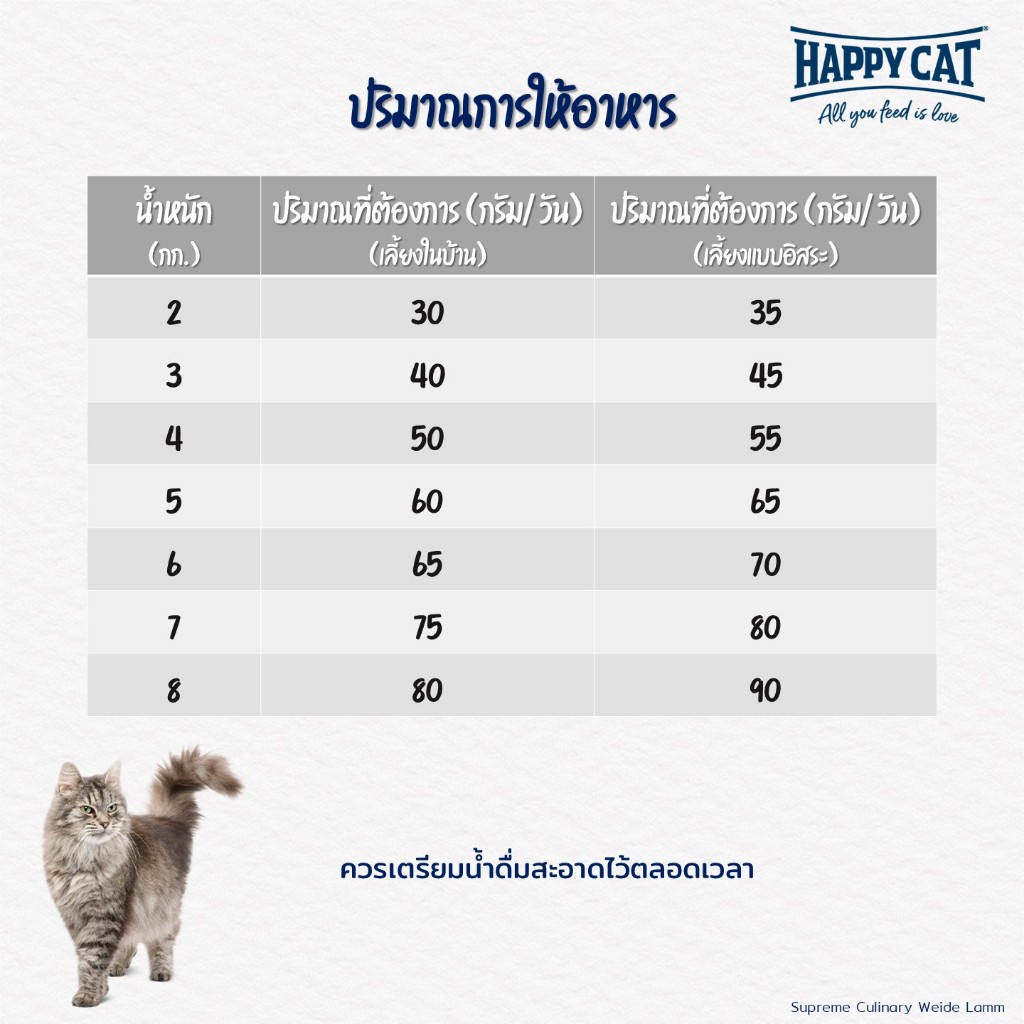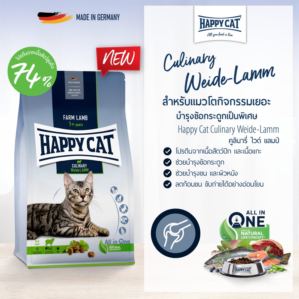 HAPPY CAT Supreme Culinary Weide Lamm อาหารแมวโต กิจกรรมเยอะ พรีเมี่ยม บำรุงข้อ เนื้อสัตว์ปีก เนื้อแกะ และเนื้อปลา 4 Kg