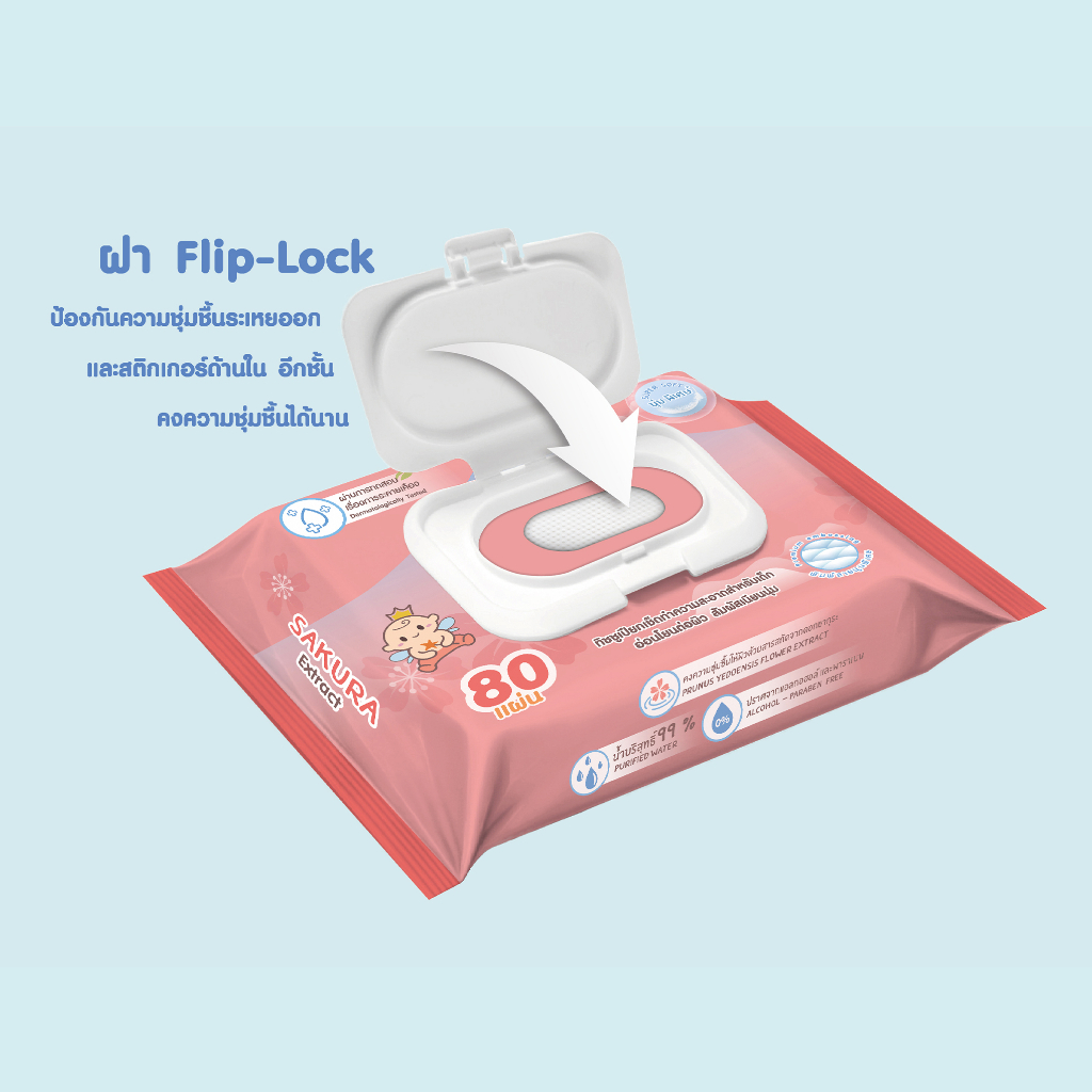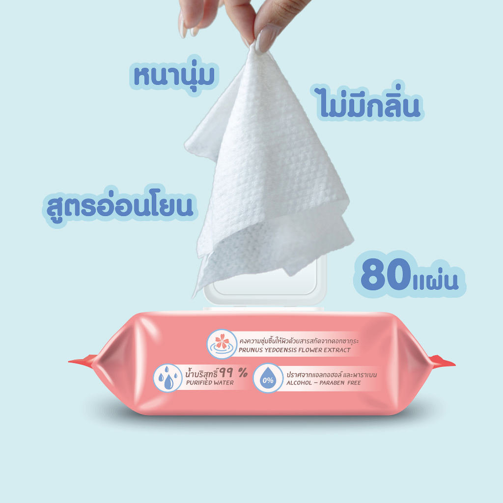 [ 6 ห่อ ] Cherry Baby ทิชชูเปียก ผ้าเช็ดทำความสะอาดสูตรน้ำบริสุทธิ์ 1 ห่อ 80 แผ่น