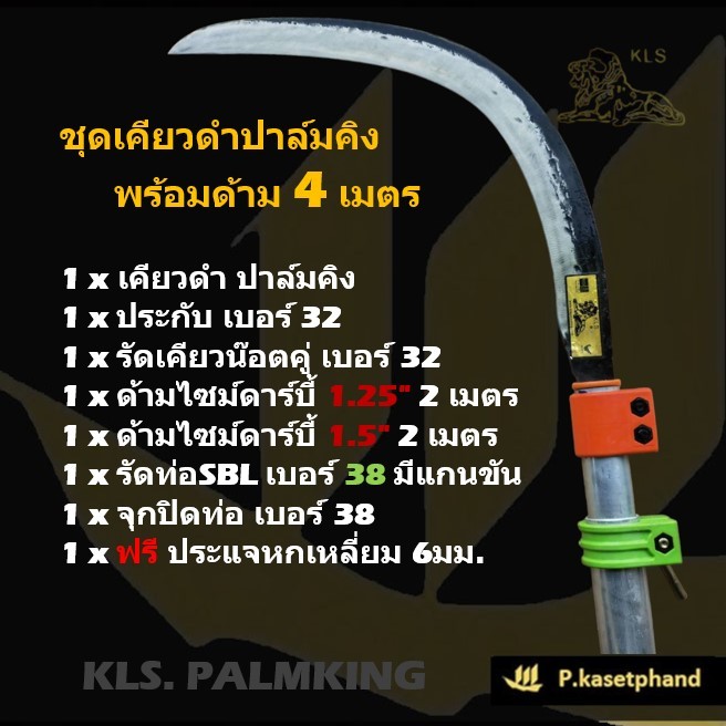 KLS ชุดเคียว ปาล์มคิง เคียวดำ เคียวขาว ➕️ด้ามเคียว อลูมิเนียม ไซม์ดาร์บี้ ยาว 2 เมตร ด้ามสไลด์ อุปกรณ์พร้อมใช้ Palmking