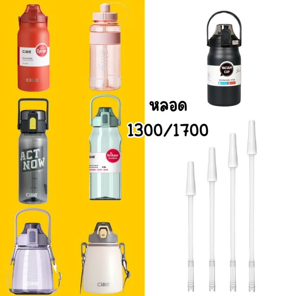 หลอดดูดน้ำขนาด 1.3/1.7 ลิตร และชุดแปรงล้างแก้วน้ำ กระบอกน้ำ หลอดประกอบเเยกชิ้นส่วน ทำความสะอาดง่าย