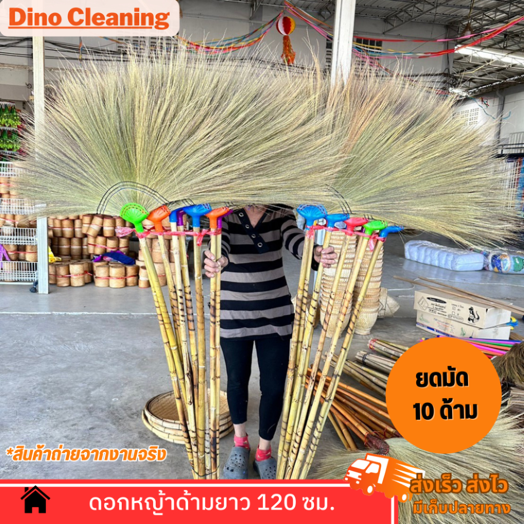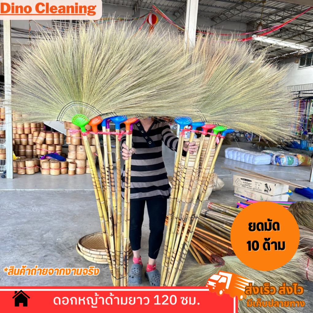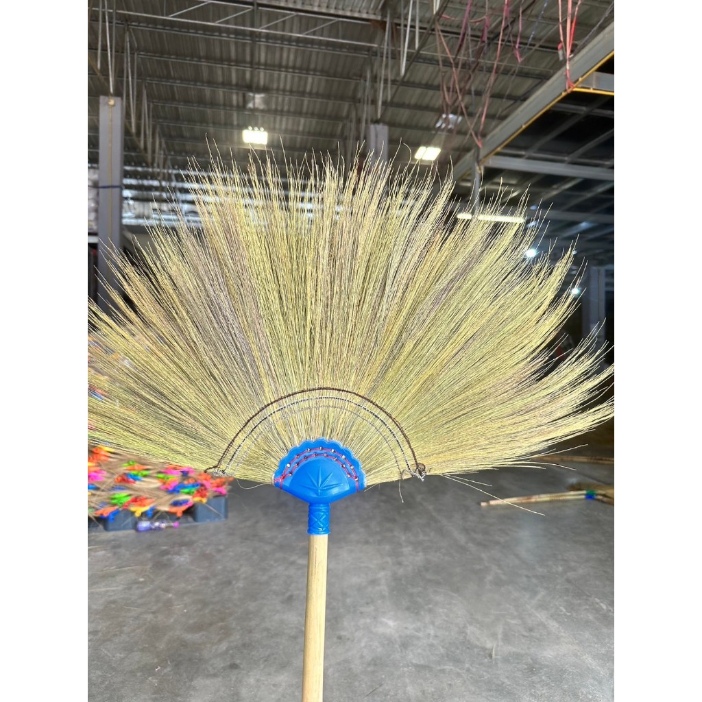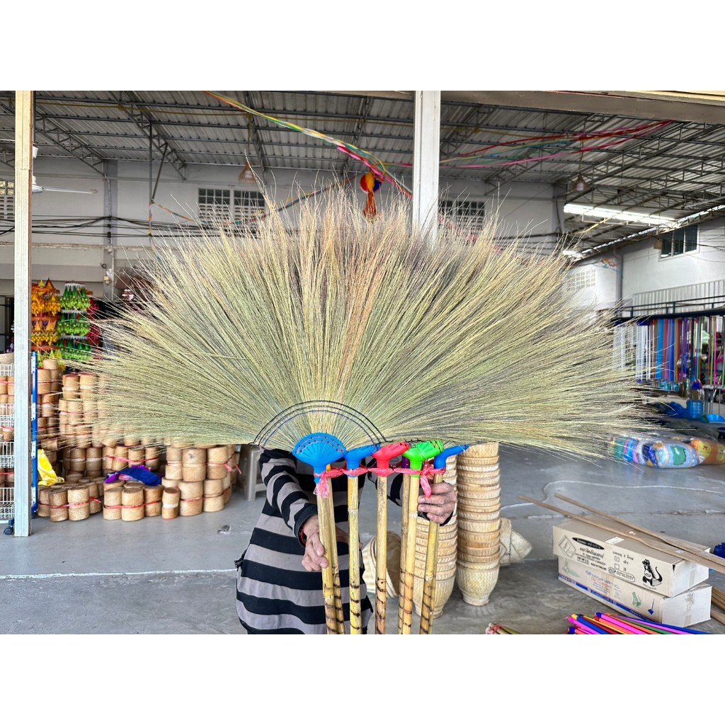 ไม้กวาดดอกหญ้าด้ามไม้ยาว ถักทอมือ รุ่นหนา ด้ามไม้ยาว 120 ซม. ขนแน่น ทากาว ราคาส่ง สินค้าพร้อมส่ง