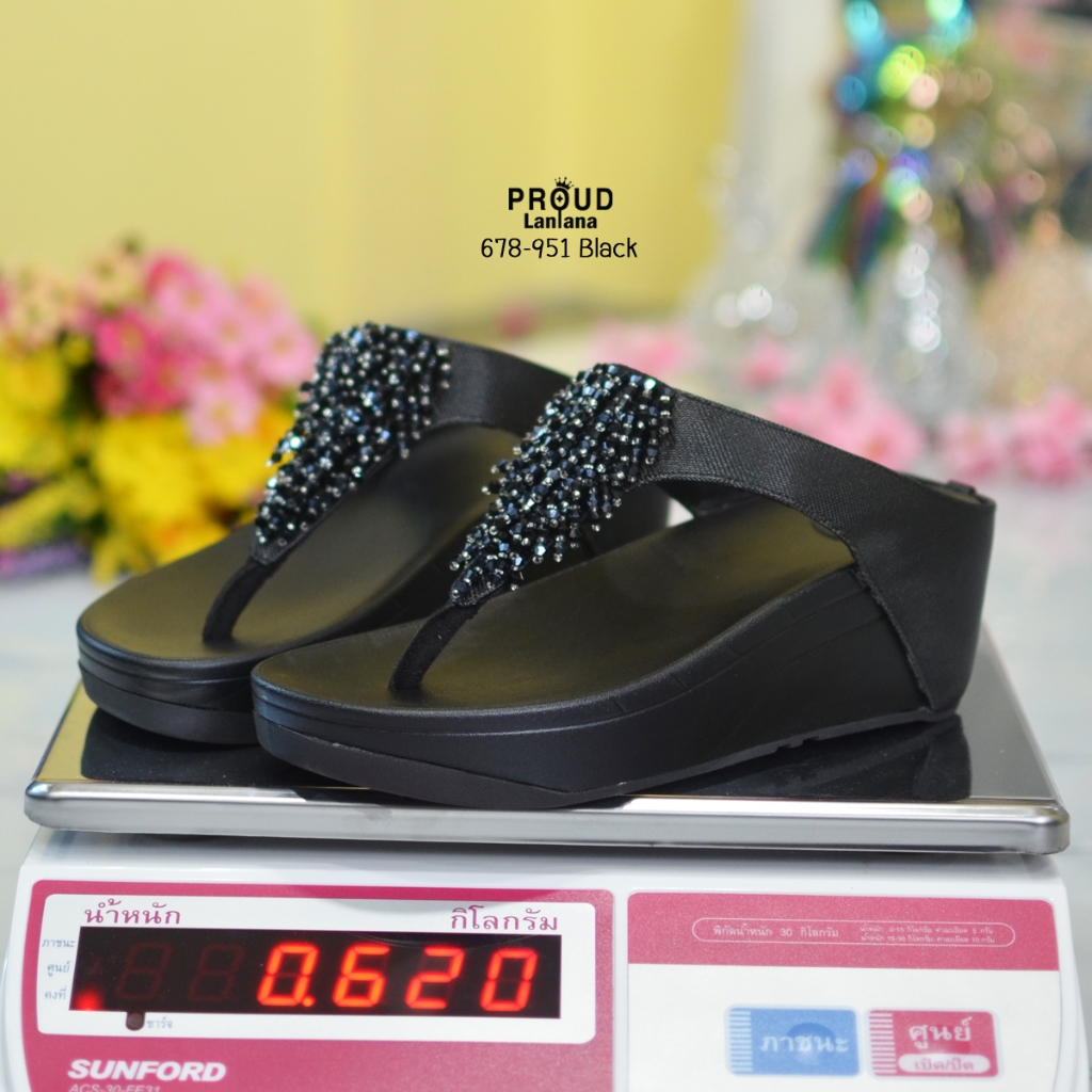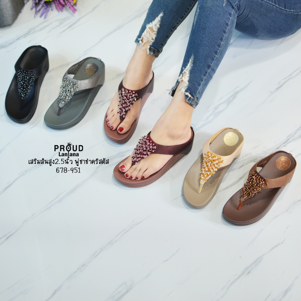 678-951 รองเท้าสุขภาพเสริมส้นสูง2.5นิ้ว คีบพู่ชาช่าคริสตัลสวยหรูน่ารักฟรุ้งฟริ้ง