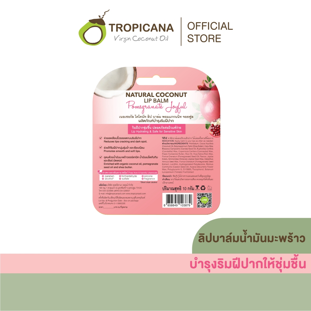 Tropicana | ทรอปิคานา ลิปบาล์มน้ำมันมะพร้าว บำรุงริมฝีปาก กลิ่น POMEGRANATE JOYFUL 10g