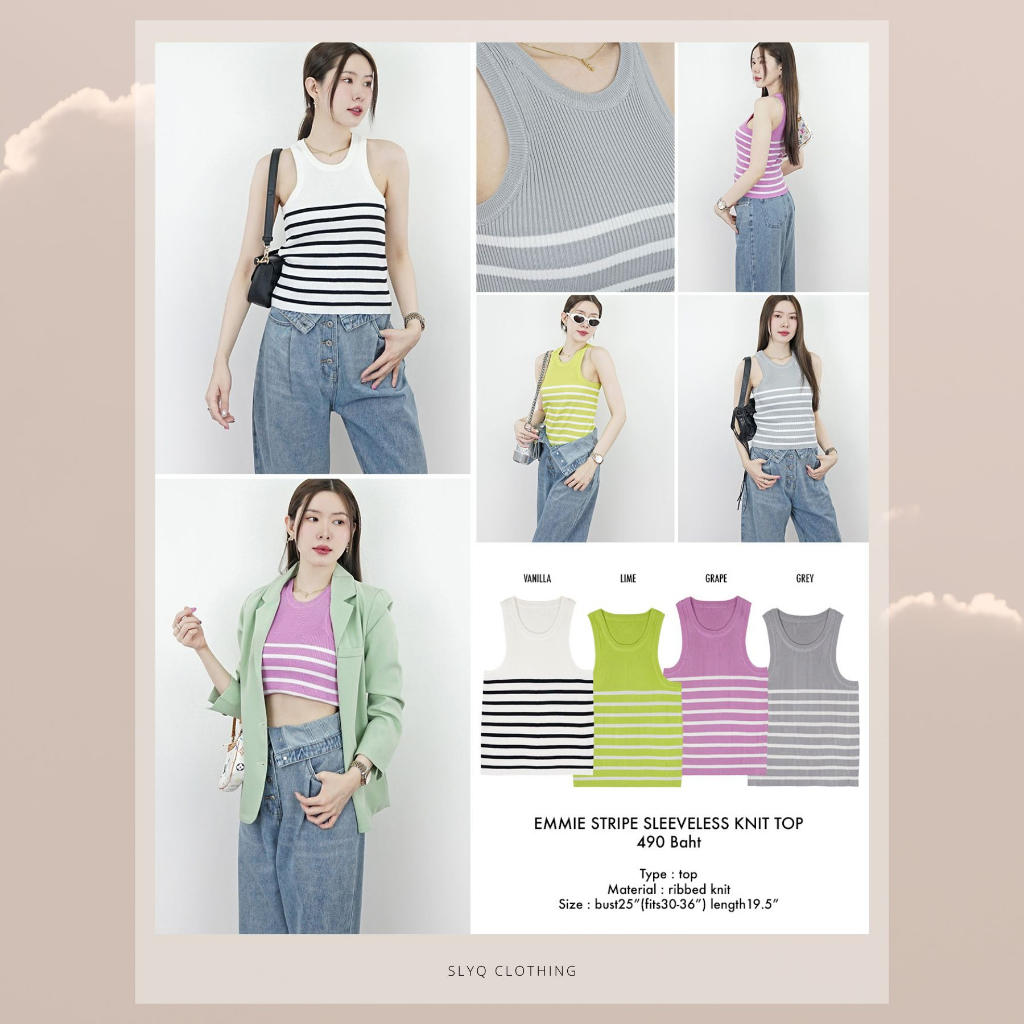 เทา/ชมพูม่วง/เขียว SLYQ EMMIE STRIPE SLEEVELESS KNIT TOP เสื้อกล้ามแขนกุดผ้าร่องลายขวาง