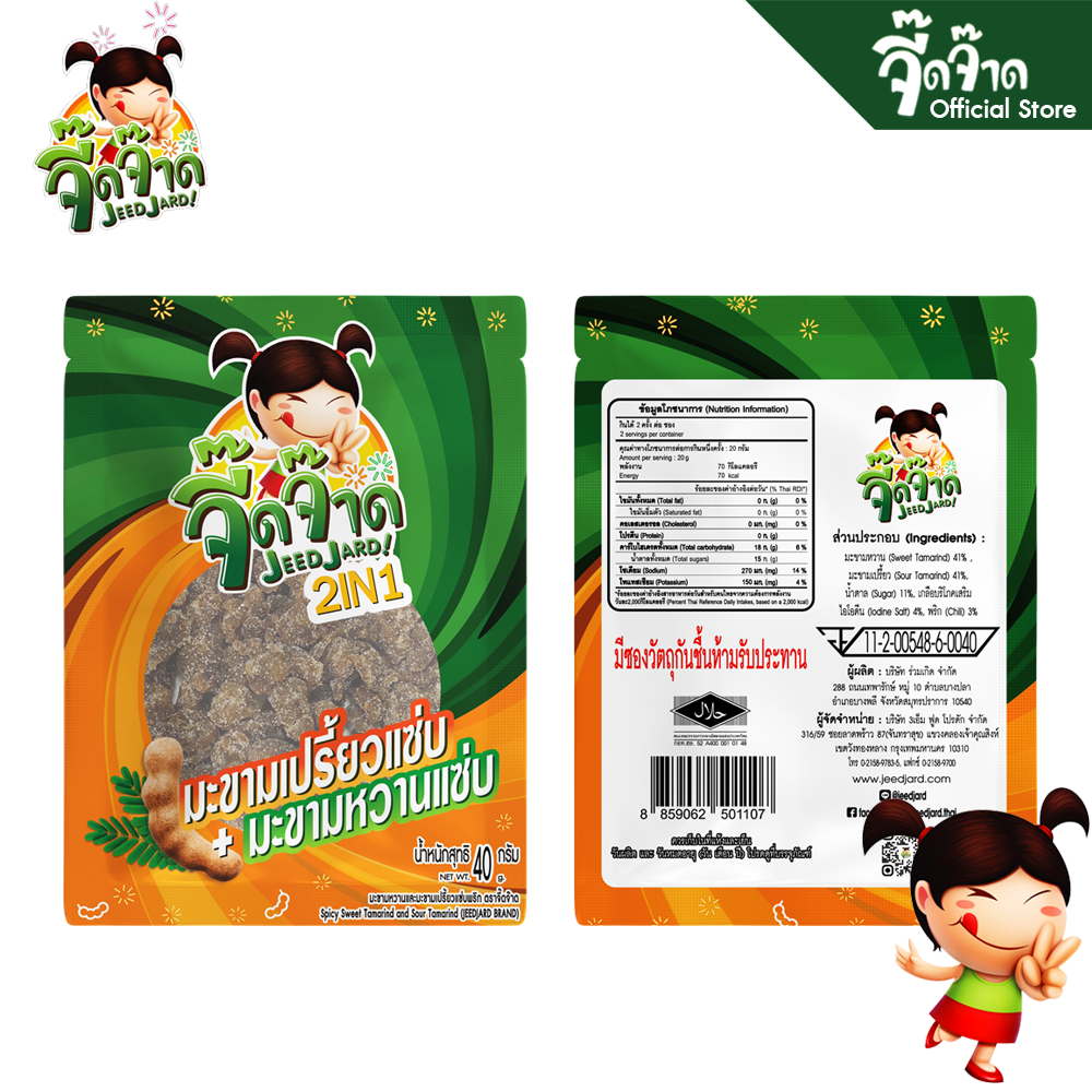 จี๊ดจ๊าด 2 in 1 มะขามเปรี้ยวแซ่บ + มะขามหวานแซ่บ ขนาด 40 กรัม