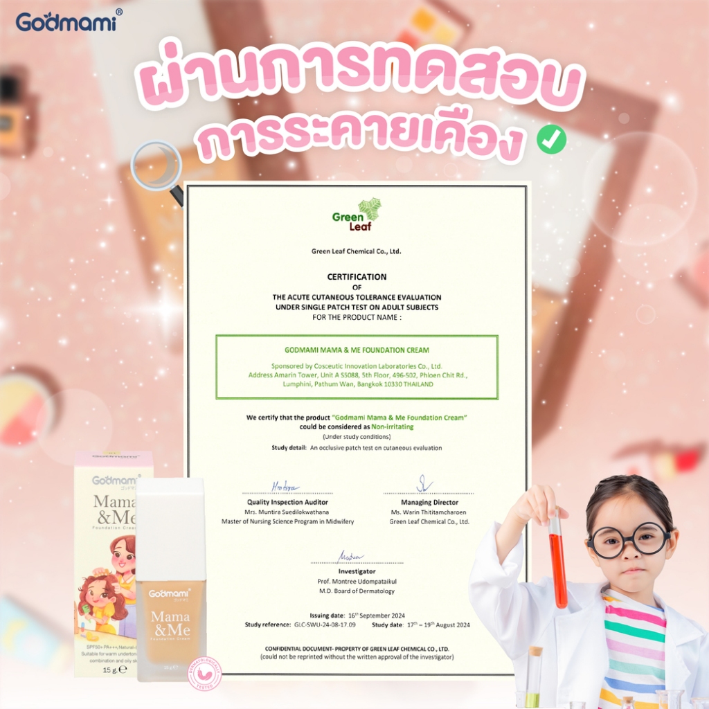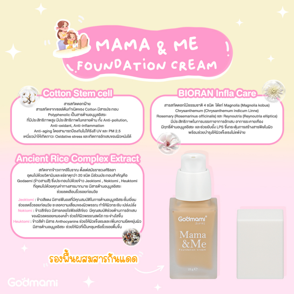 Godmami ครีมรองพื้นสำหรับเด็กและคุณแม่ตั้งครรภ์ สูตรอ่อนโยนผสมกันแดด SPF50 PA++++ Mama&Me Foundation