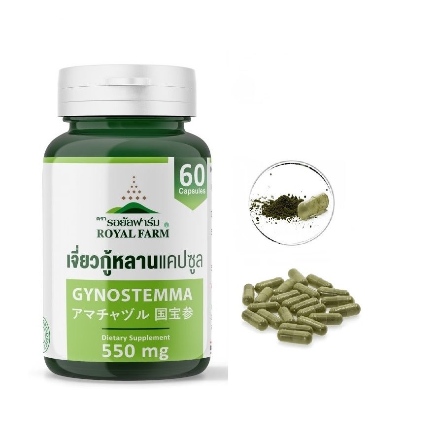 กรดไหลย้อน อาหารไม่ย่อย ผลิตภัณฑ์เสริมอาหาร รอยัลฟาร์มเจี่ยวกู้หลานแคปซูล 60 แคปซูล 550 mg.