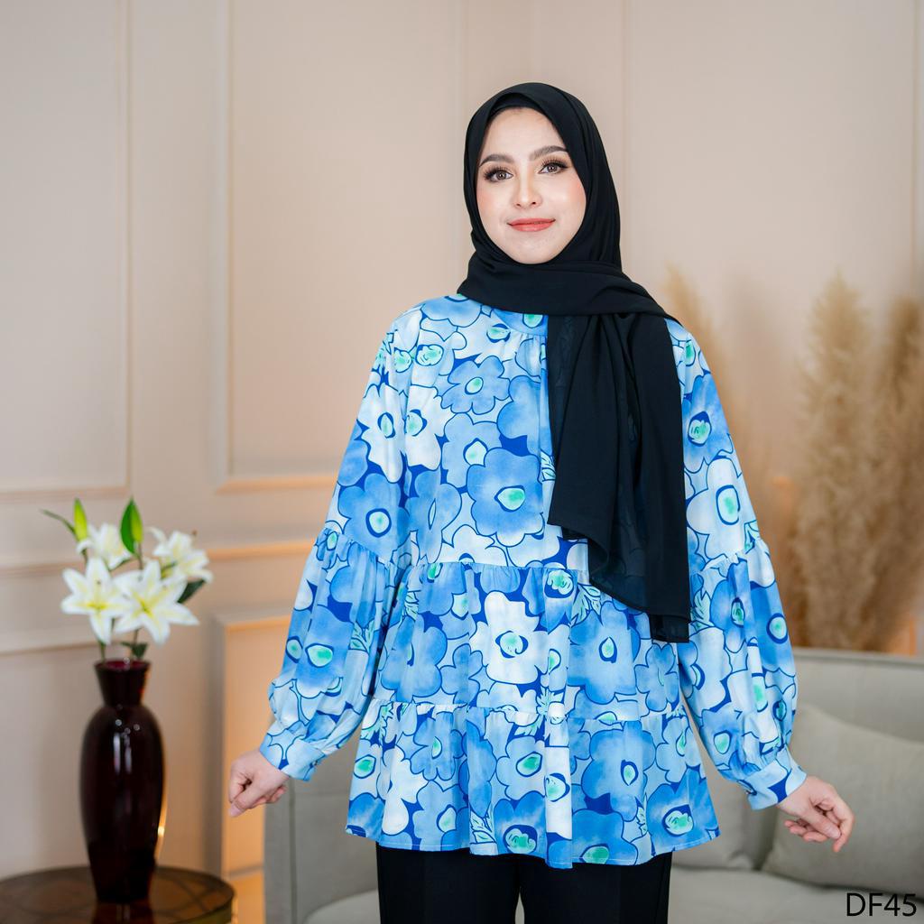 เสื้อมุสลิมผู้หญิงคอปีนระบาย2ชั้นแขนมีกระดุมงานดีเทลน่ารักเหมาะกับผญอิสลามใส่ได้ในชีวิตรประจำวันหรือรับแขก DF45 รุสมีนี