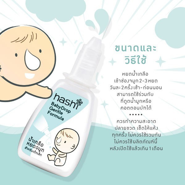 Hashi Baby Drop 4 ML น้ำเกลือหยดจมูก สำหรับเด็กเล็ก ช่วยให้น้ำมูกนิ่ม และสูดออกง่าย