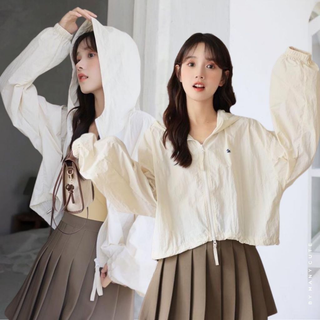 เสื้อคลุมผู้หญิง เสื้อคลุมกันแดด เสื้อคลุมผ้าร่ม มีฮู้ด กันแดด กันลม บางเบาใส่สบาย ManyCute