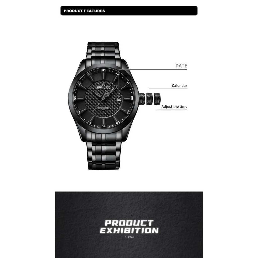 Naviforce นาฬิกาข้อมือควอตซ์แฟชั่น สายแสตนเลส กันน้ํา สําหรับบุรุษ